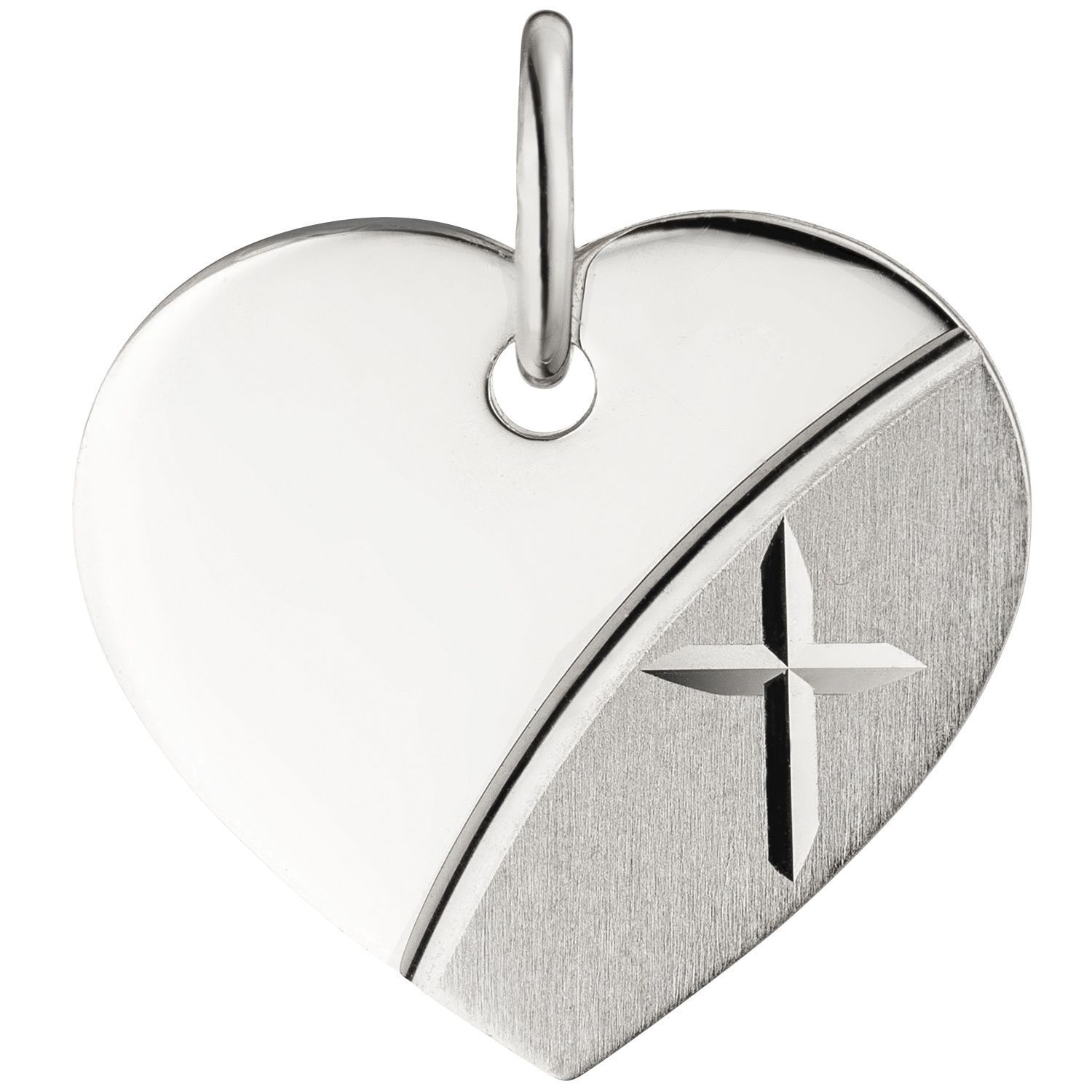 Anhänger Herz Kreuz Gravur Gravurplatte Herz 925 Silber teil matt Herzanhänger