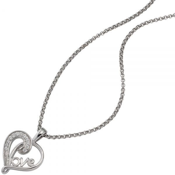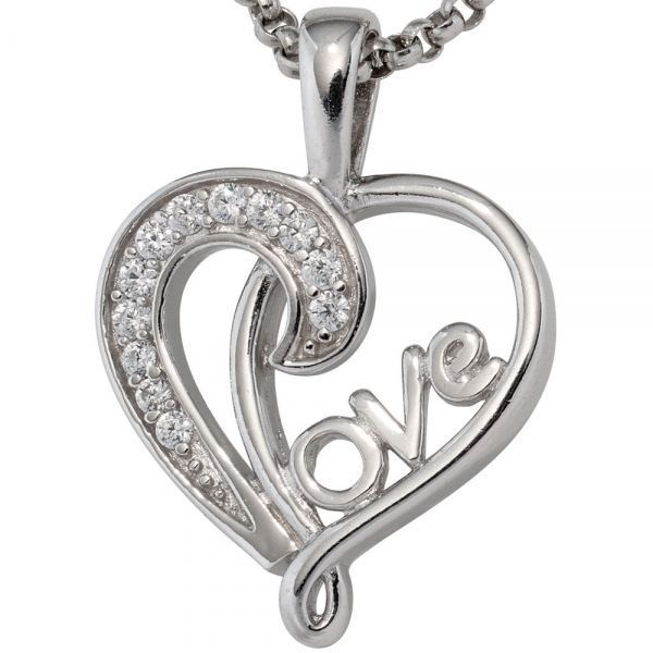 JOBO Anhänger Herz / LOVE 925 Sterling Silber rhodiniert mit Zirkonia