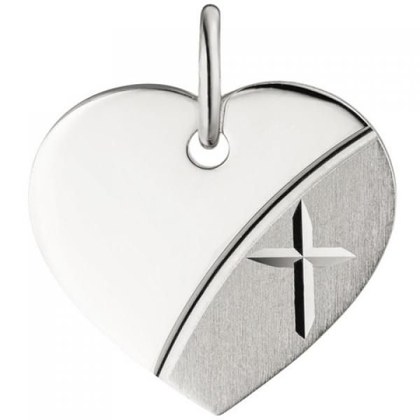 JOBO Anhänger Herz mit Kreuz Gravur Gravurplatte Herz 925 Silber teil matt