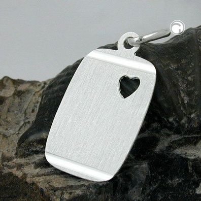 • Anhänger Herz Herzen Gravur Gravurplatte eckig 925 Silber matt Silberanhänger