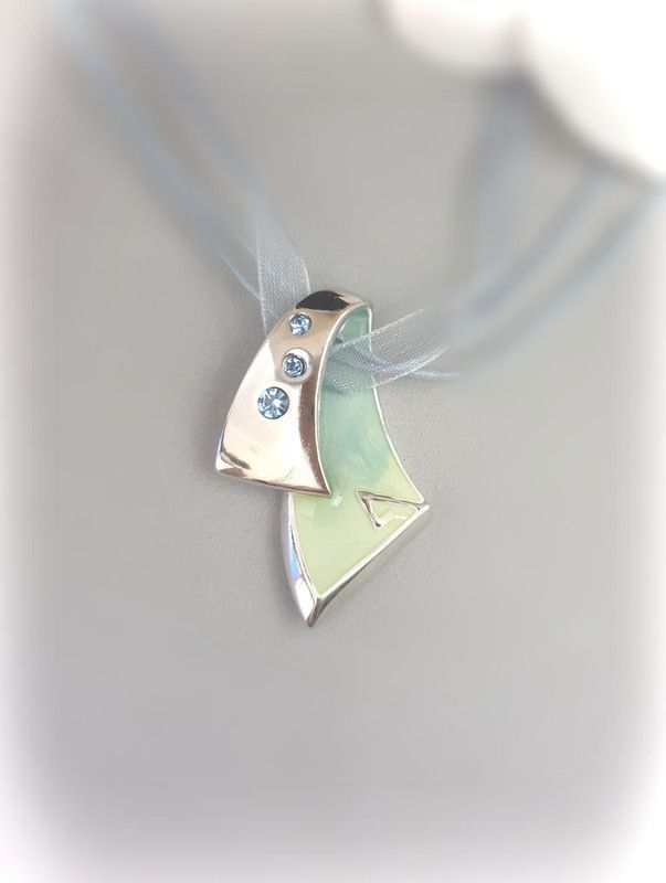 Silberfarbener Anhänger inkl. Kette. Der Anhänger besteht aus Metall und ist mit Steinen verziert. Die Größe des Anhängers beträgt inkl. Öse ca. 44mm x 28mm. Die Kette ist aus farbigem Wachsband / Stoffband und hat eine Länge von ca. 43-51 cm.