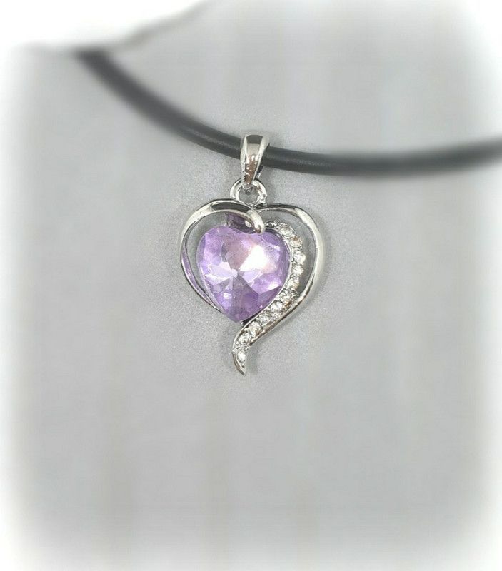 Silberfarbener Anhänger inkl. Kette. Der Anhänger besteht aus Metall und ist mit Steinen verziert. Die Größe des Anhängers beträgt inkl. Öse ca. 26mm x 16mm. Die Kette ist aus schwarzem Kautschukband und hat eine Länge von ca. 41-48 cm.