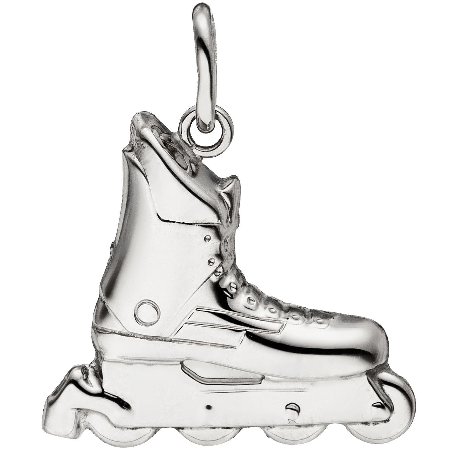 Anhänger 'Inline-Skate' aus 925 Sterlingsilber, rhodiniert und teilmattiert, Höhe ca. 17,8 mm, Breite ca. 18,7 mm, Tiefe ca. 4,4 mm, Innenmaße der Öse ca. 4 mm x 2,4 mm, Gewicht ca. 1,1 g * Der Artikel ist anlaufgeschützt (rhodiniert) * Bitte beachten Sie