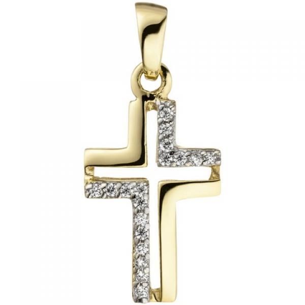 JOBO Anhänger Kreuz 375 Gold Gelbgold 18 Zirkonia Kreuzanhänger Goldkreuz