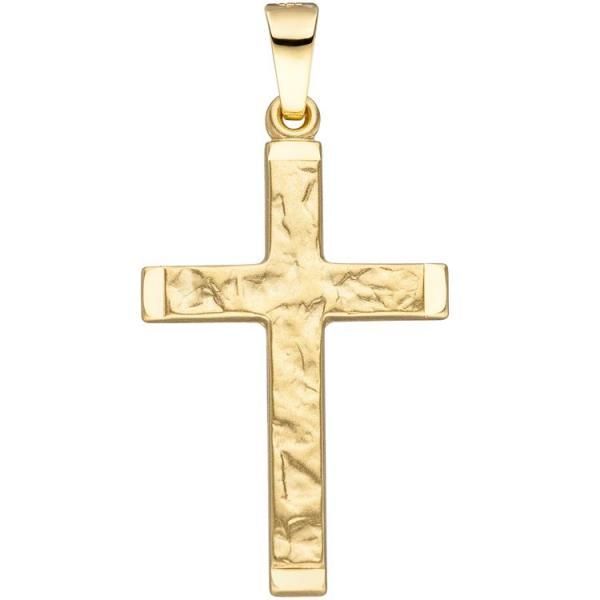JOBO Anhänger Kreuz 585 Gelbgold gehämmert