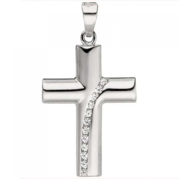 JOBO Anhänger Kreuz 925 Sterling Silber 12 Zirkonia Kreuzanhänger