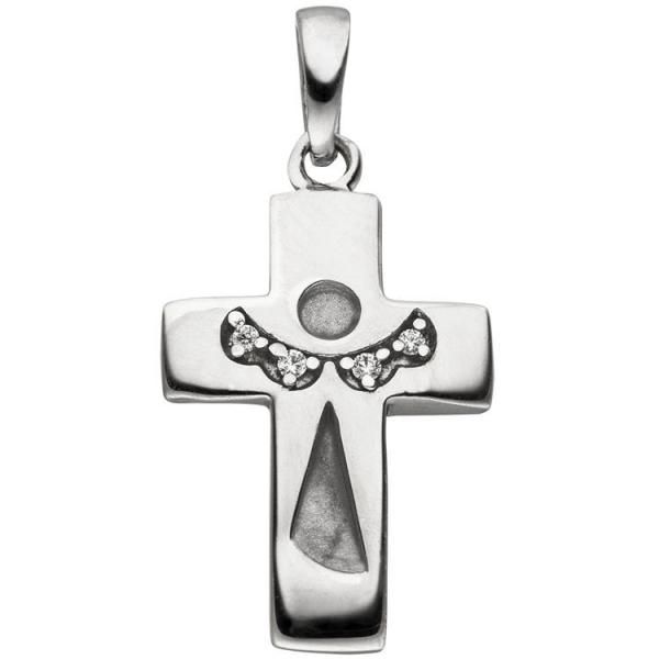 JOBO Anhänger Kreuz Schutzengel Kreuz 925 Silber mattiert 4 Zirkonia Kreuzanhänger