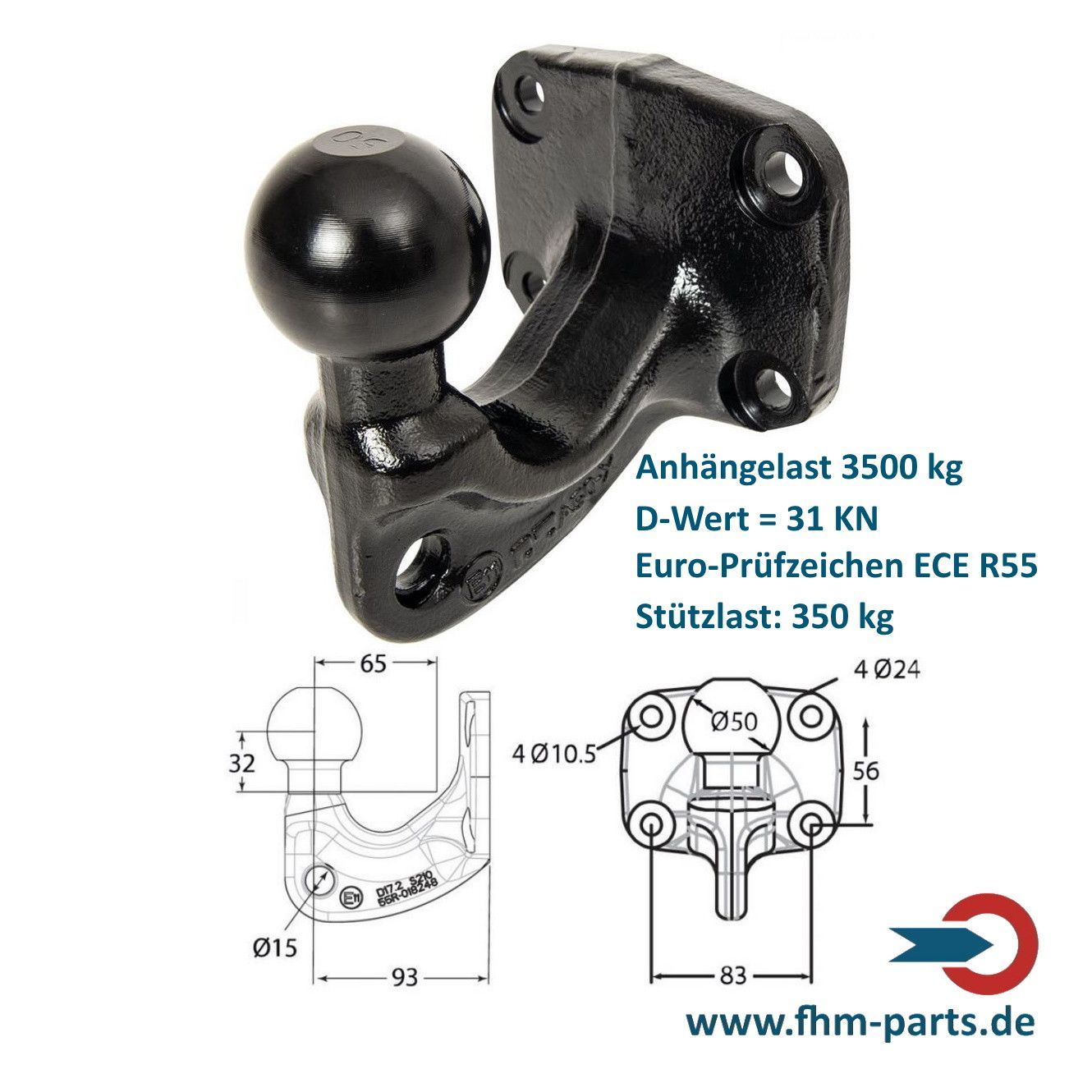 Anhänger Kupplungskugel Kugelkopf Kupplung 3500 Kg Ø 50mm ECE R55 D=31 KN 4-Loch