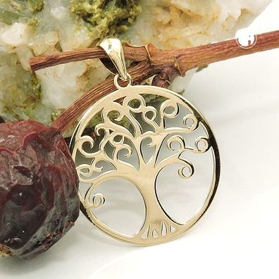 • Anhänger 20mm Lebensbaum glänzend 9Kt GOLD