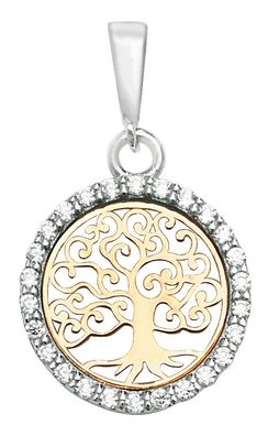 • 9 ct/Karat Weißgold/Gelb Gold Damen - Lebensbaum Anhänger mit Zirkonia