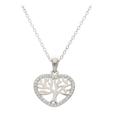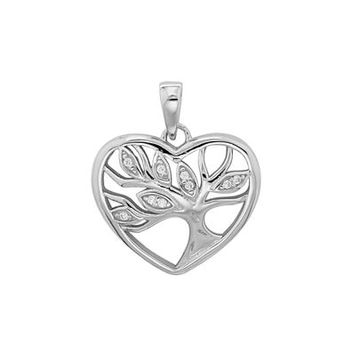• Kette mit Anhänger Silber 925, Lebensbaum, Herz, Zirkonia FSCO003si