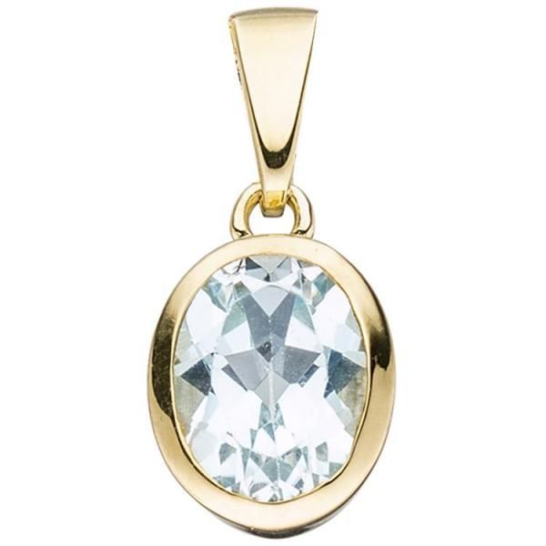 JOBO Anhänger oval 333 Gelbgold 1 Blautopas blau hellblau Gold-Anhänger