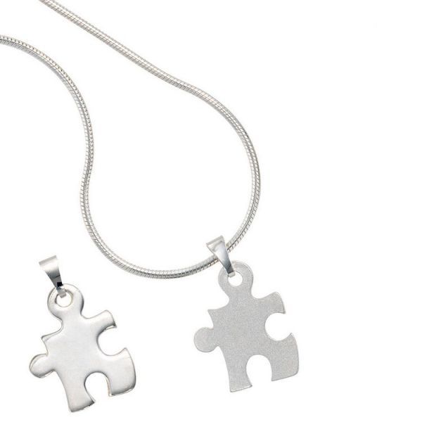 • trendor Schmuck Puzzle Partner-Anhänger mit 2 Halsketten Silber 925 63775