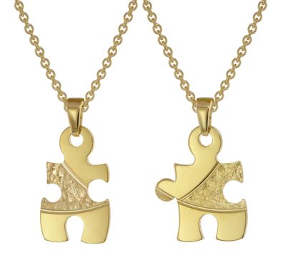 • trendor Schmuck Puzzle Partner Set Gold auf Silber + 2 Halsketten 75950