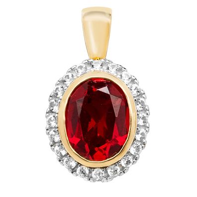 • Klassischer 9 ct/Karat Rotgold Damen - Anhänger mit Rubin (synth.), Saphir (synth.)