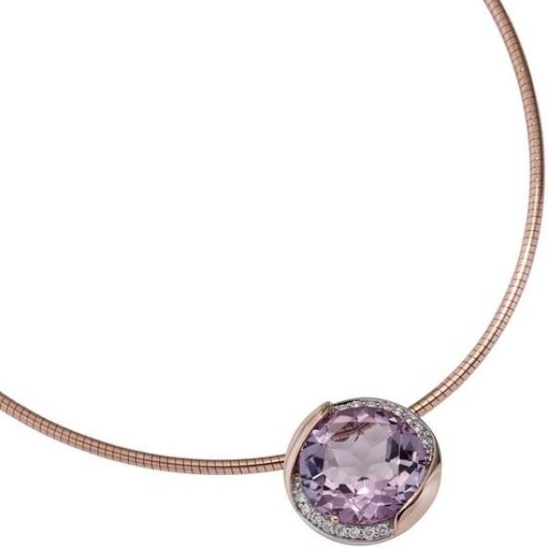 JOBO Anhänger rund 585 Rotgold 16 Diamanten Brillanten 1 Amethyst lila