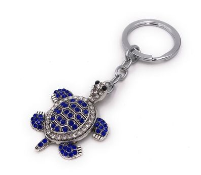 • Schlüsselanhänger Schildkröte Kriechtier Panzertier blau Strass silber Anhänger