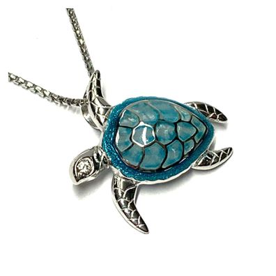 • Anhänger Schildkröte 925 Silber rhodiniert Emaille Türkis Kettenanhänger inklusive