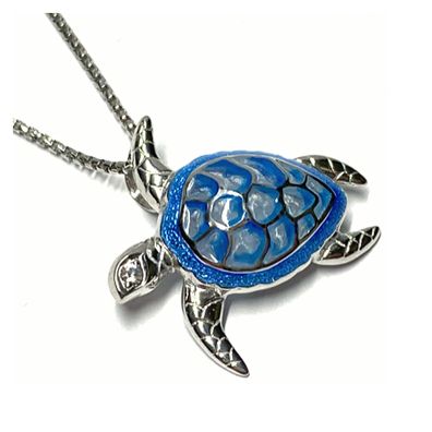 • Anhänger Schildkröte 925 Silber rhodiniert Emaille Blau Kettenanhänger inklusive