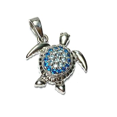 • Anhänger Schildkröte 925 Silber rhodiniert Zirkonia blau Kettenanhänger