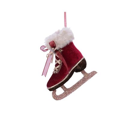 • Weihnachtsanhänger Schlittschuh Samt rot mit Fellrand Glitterkufe Deko Anhänger