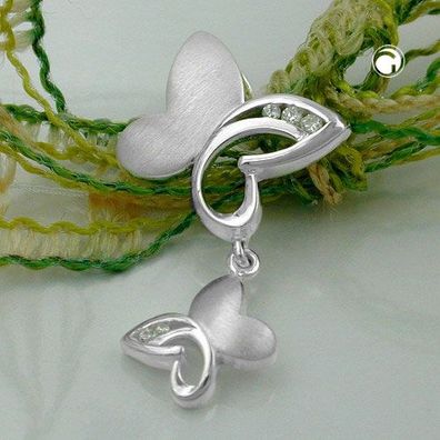 • Anhänger 30x17mm 2 Schmetterlinge matt-glänzend Zirkonias Silber 925