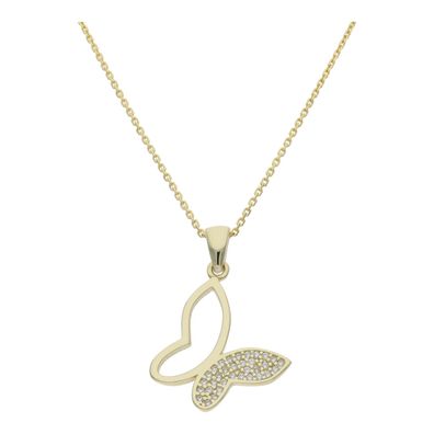 • Kette mit Schmetterling Anhänger aus 925er Silber Vergoldet mit Zirkonia