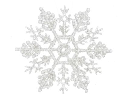 • Anhänger Schneeflocken mit Glitzer Kunststoff 10cm 12er Set - weiß