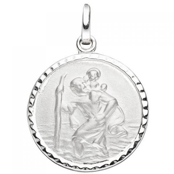 • Anhänger Schutzpatron Christopherus rund 925 Sterling Silber mattiert