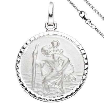 • Anhänger Schutzpatron Christopherus 925 Sterling Silber mit Kette 50 cm