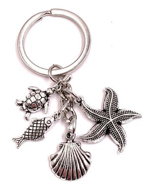 • Schlüsselanhänger Seestern Muschel Schildkröte Fisch Silber Metall Anhänger Char