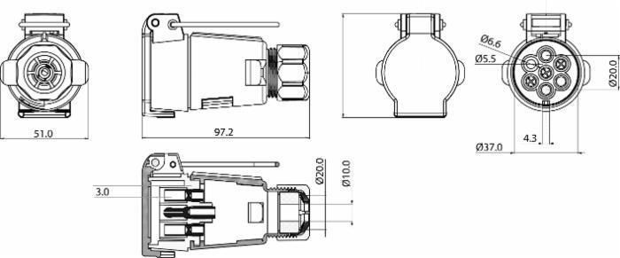Anhänger-Stecker 7-polig Steckdose Kipper Anhängeradapter Adapter Verlängerung