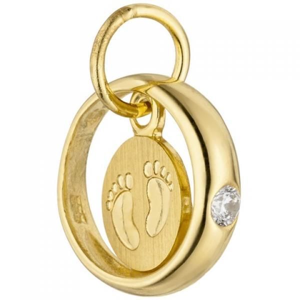 • Anhänger Taufring Füße Babyfüße 333 Gold Gelbgold 1 Zirkonia Goldanhänger