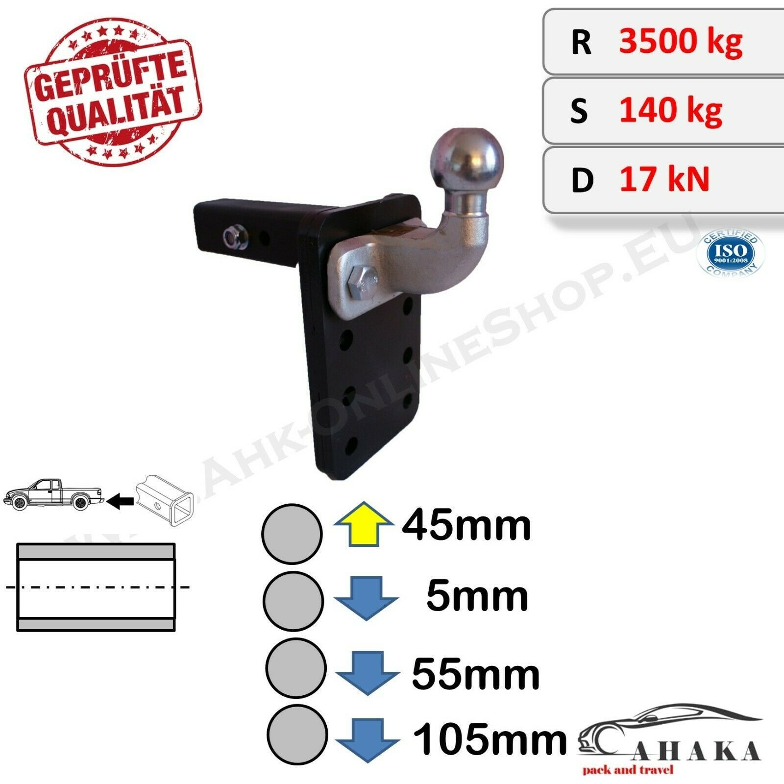 Anhängerkupplung für US Fahrzeuge - Höhenverstellbar ISO 50 Anhängevorrichtung