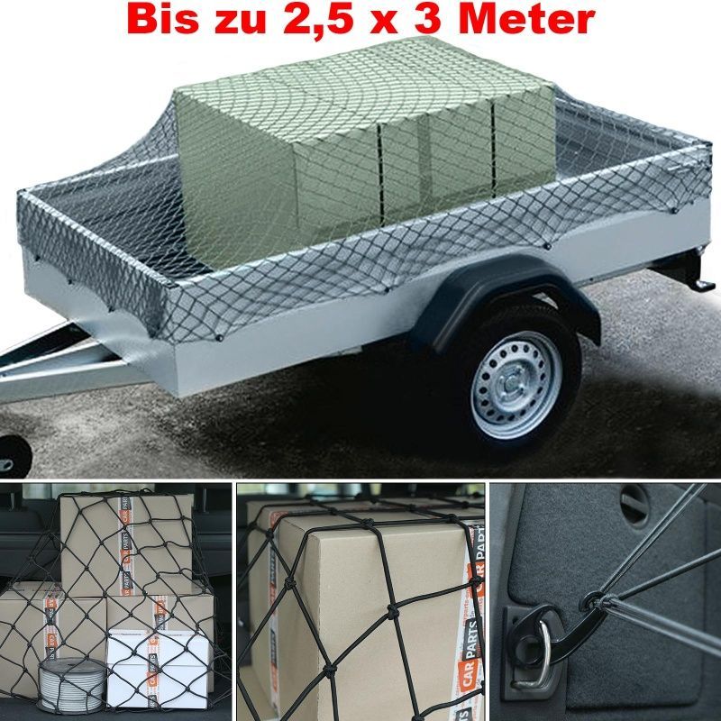 Anhängernetz 2,5x3m reißfest dehnbar Nylon schwarz Pkw Anhänger Transportnetz