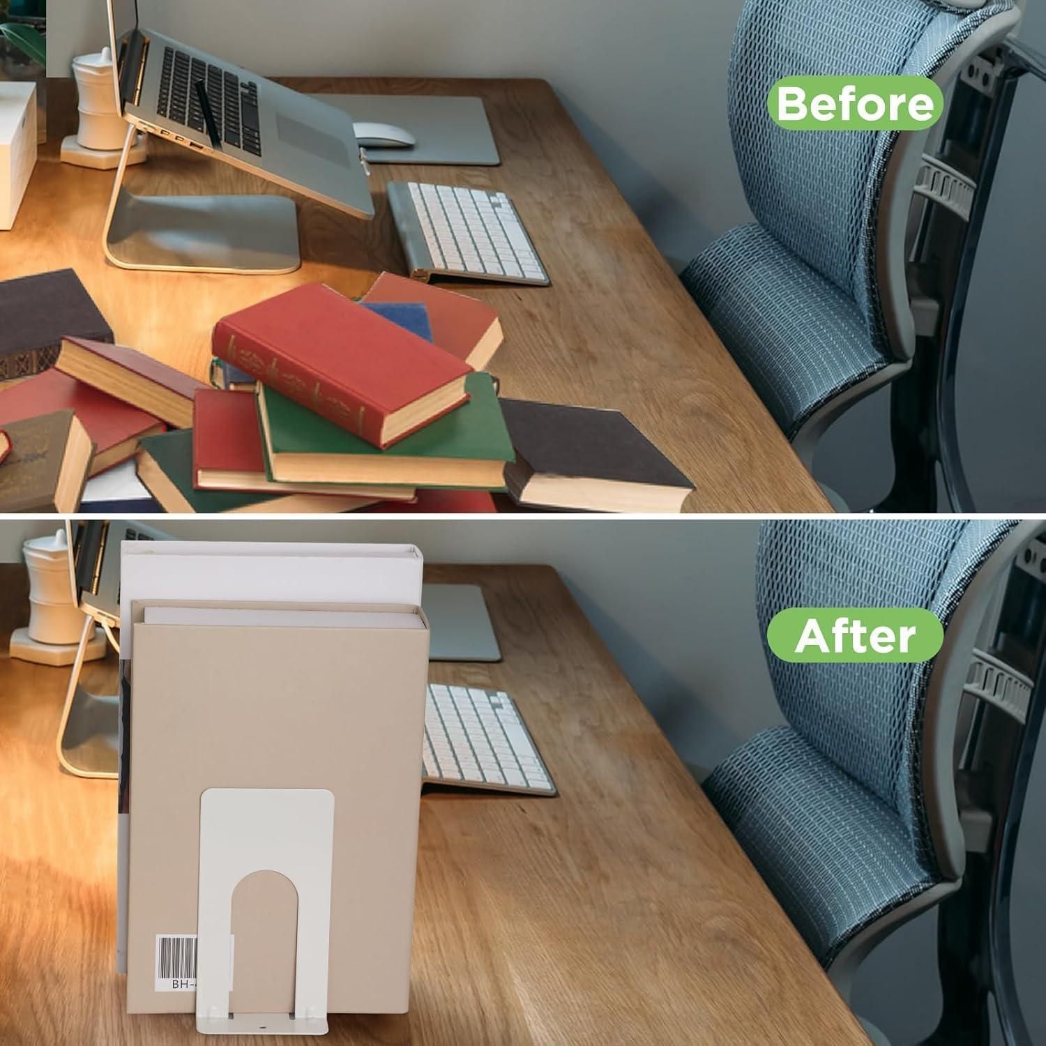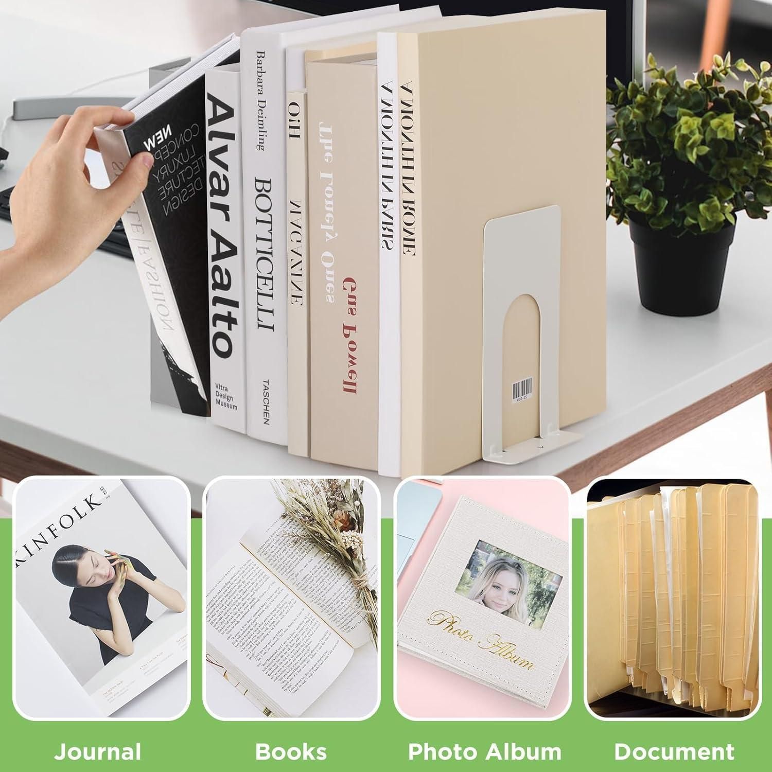 Anhow 8 Paar Buchstützen Metall Hochwertig Kinder Schule Bibliothek Weiß 16