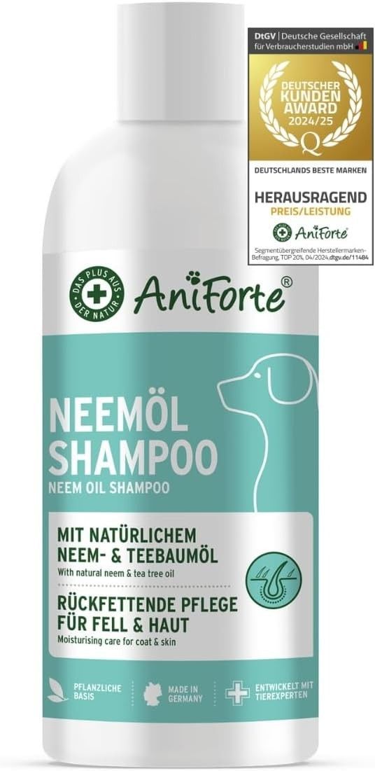AniForte pflanzliches Neemöl Shampoo , Neemshampoo 500 ml Hundeshampoo Niemöl