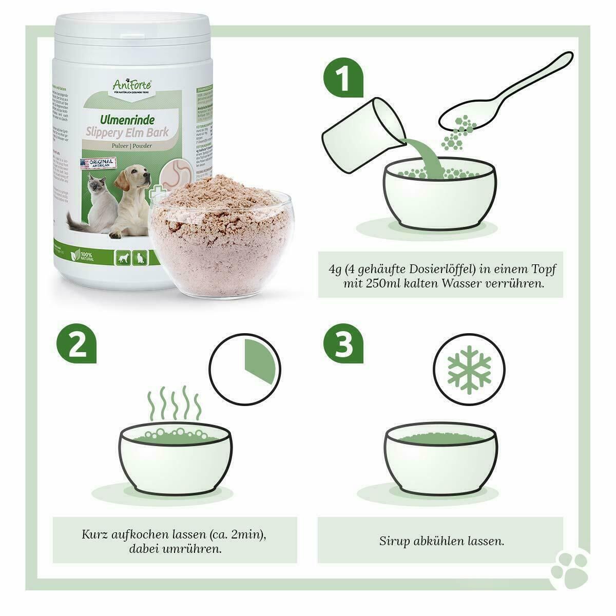 Aniforte AniForte® Ulmenrinde Pulver 250g Slippery Elm Bark - Verdauung, Reizmagen Hunde