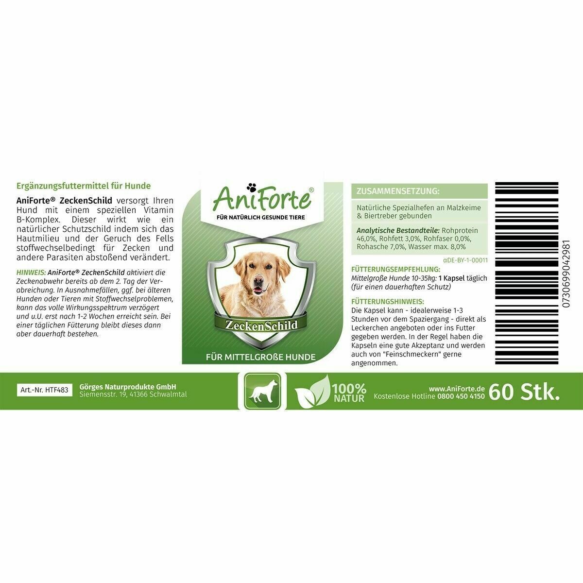 AniForte AniForte® ZeckenSchild natürliche Zeckenabwehr für mittelgroße Hunde von 10-35 k