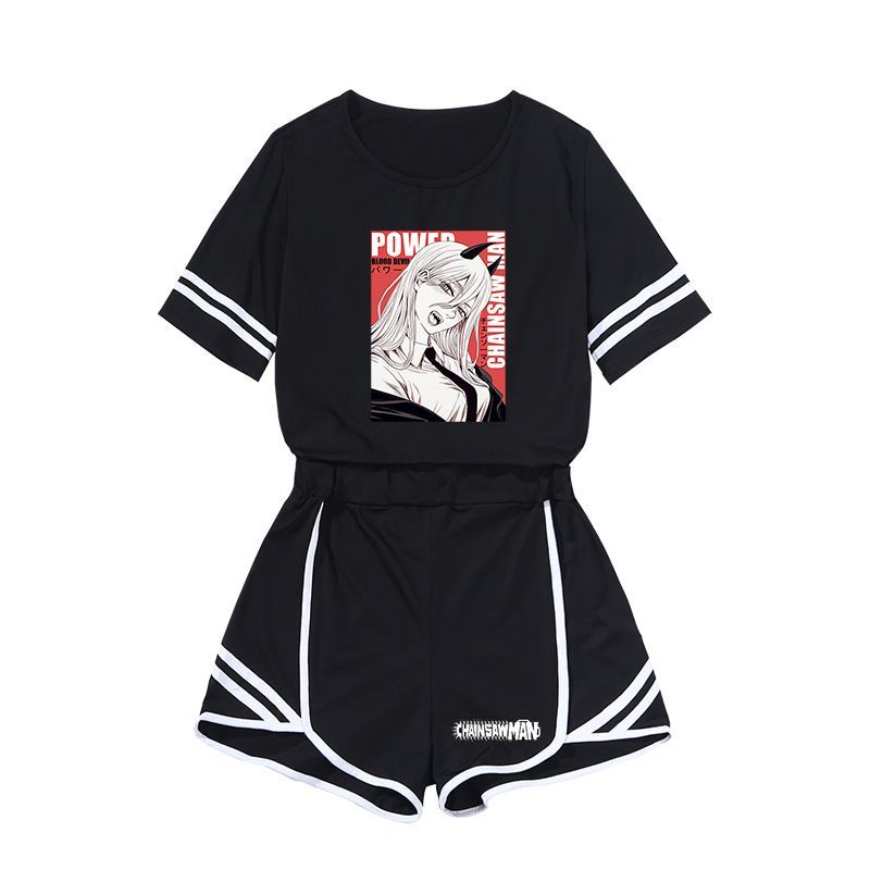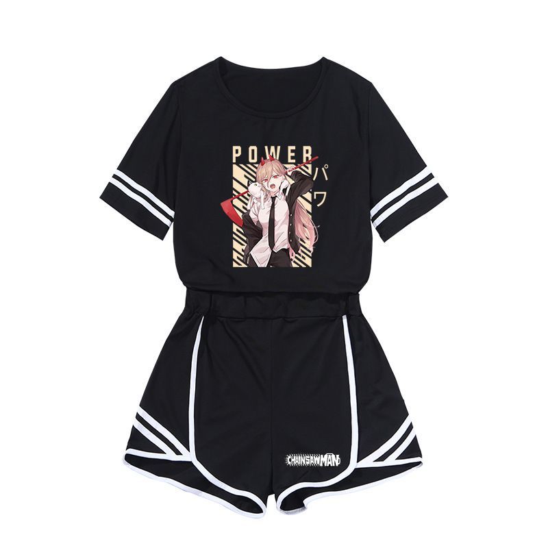 Anime 2er Set Sportanzug Chainsaw Man Denji Power Hausanzug T-shirt Kurzhose