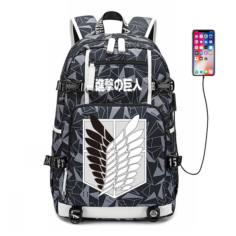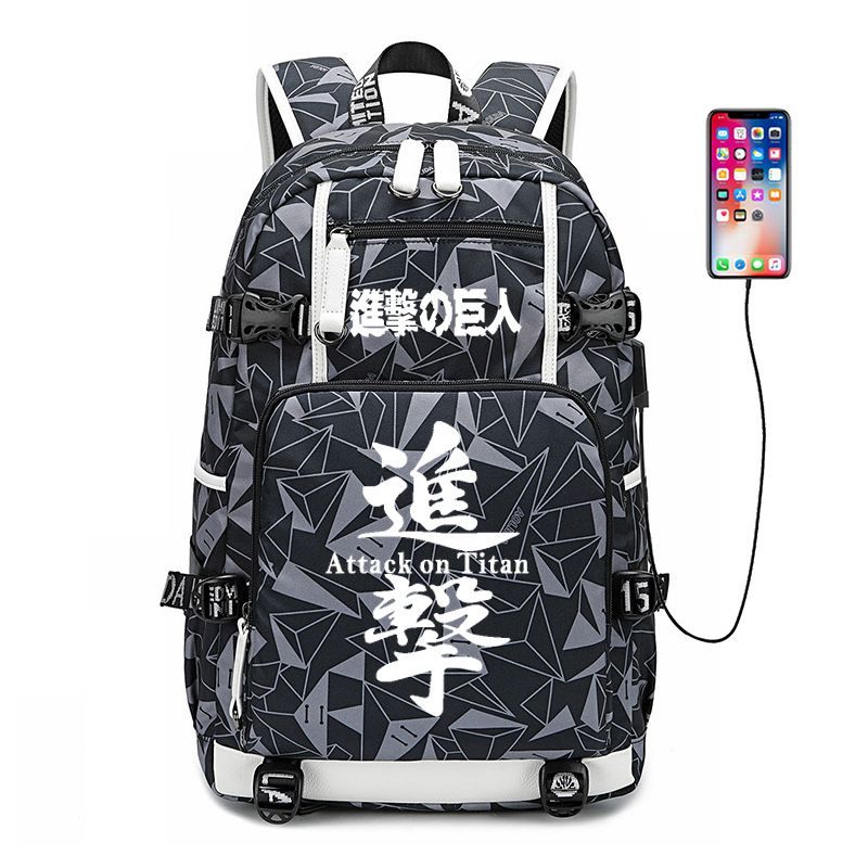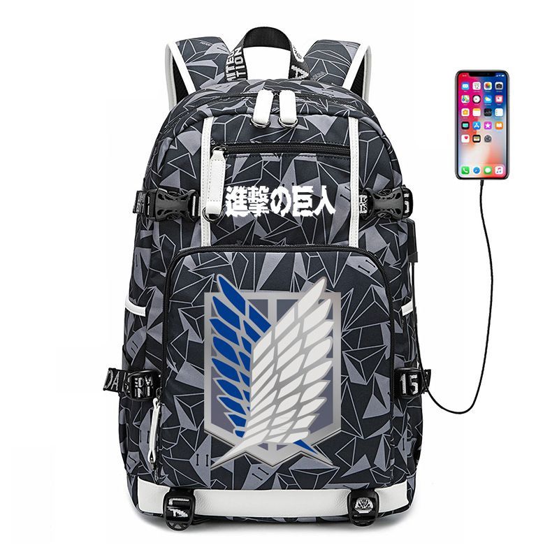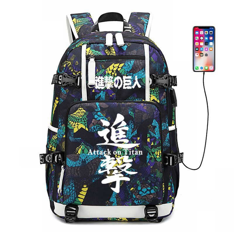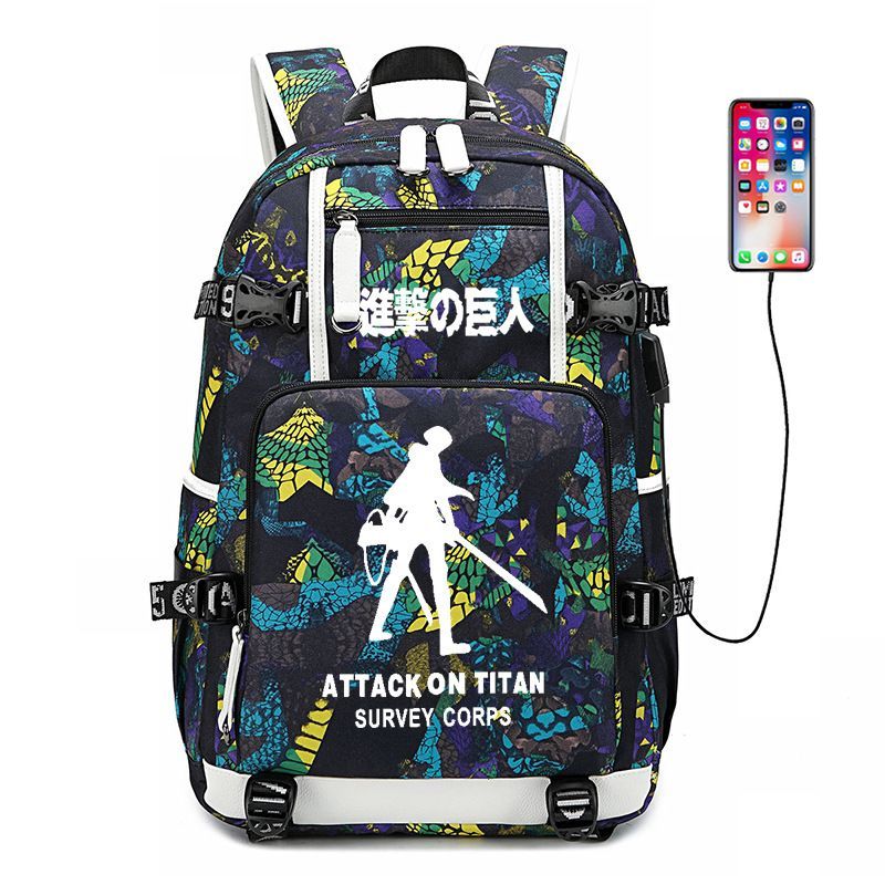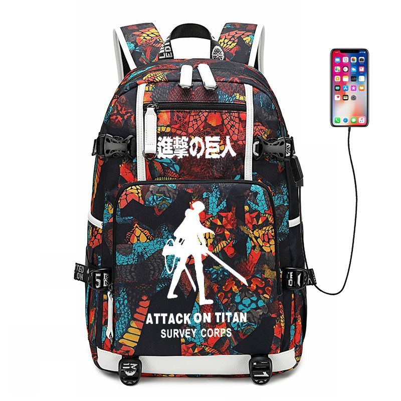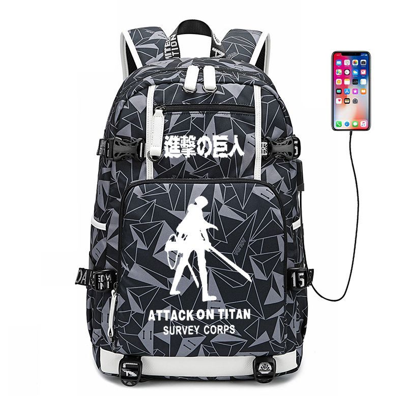 Anime Attack on Titan Eren Ackerman USB Ruscksack Damen Schultasche 30x15x47cm