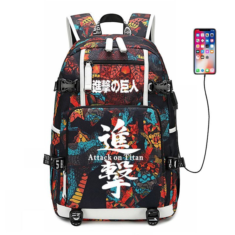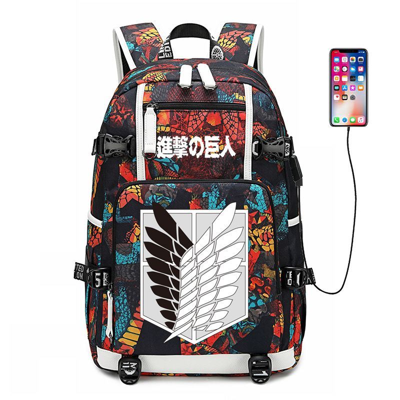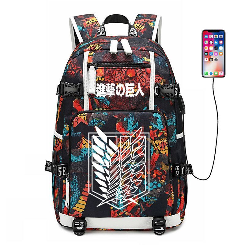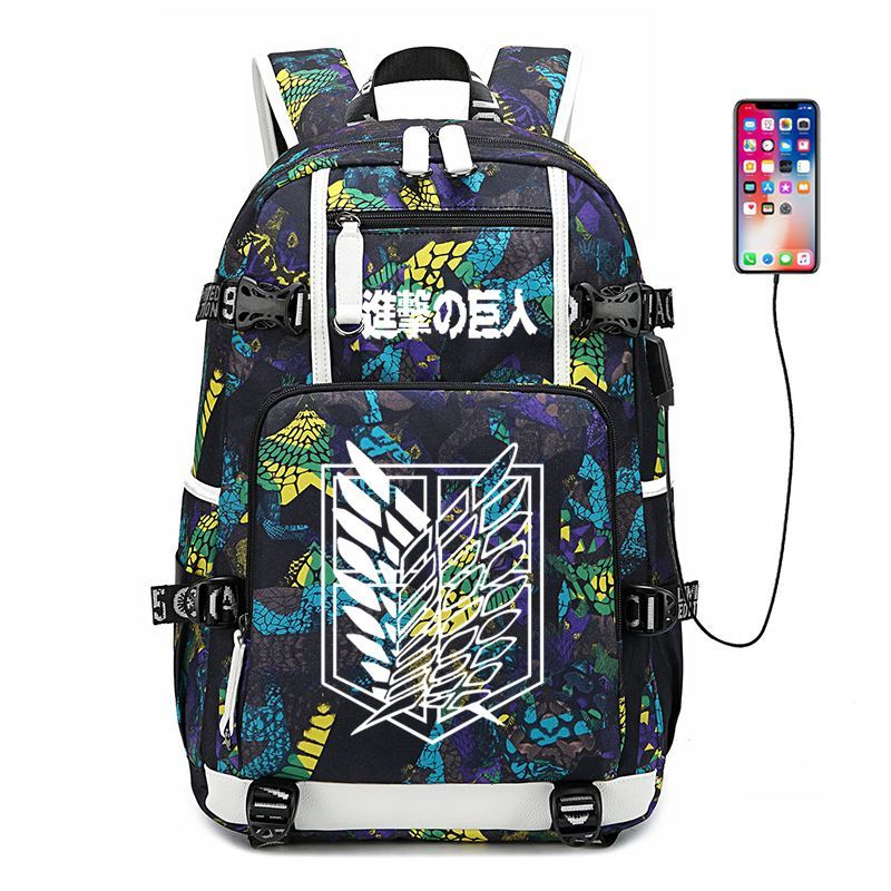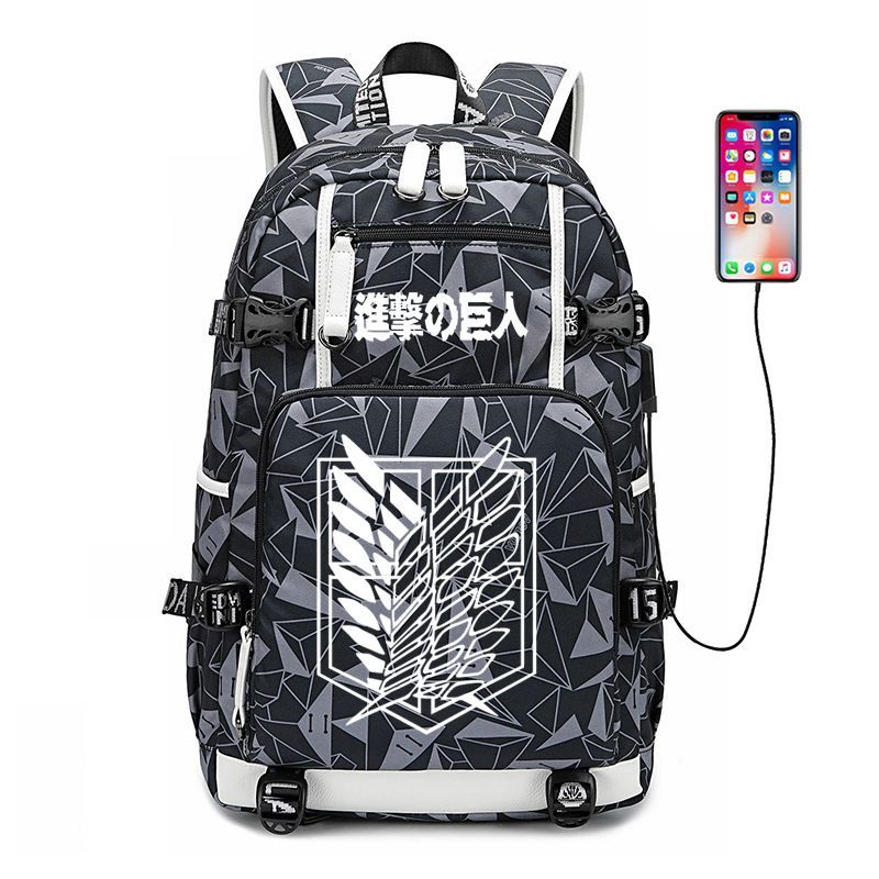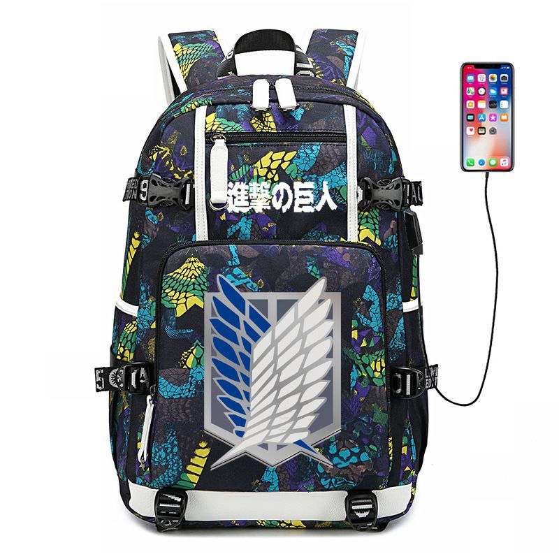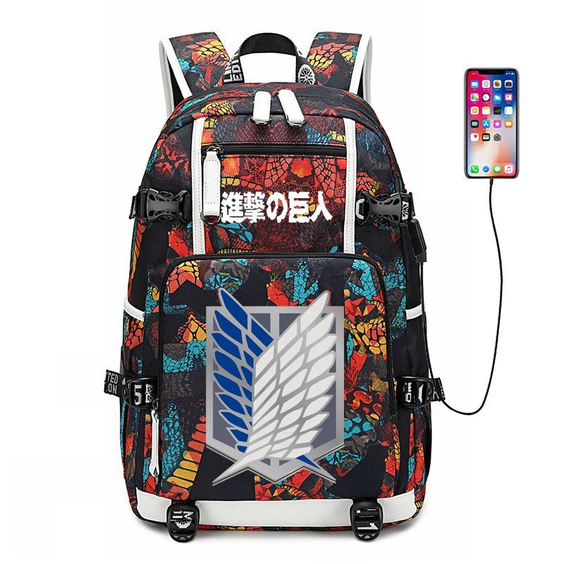 Anime Attack on Titan Eren Ackerman USB Ruscksack Damen Schultasche 30x15x47cm
