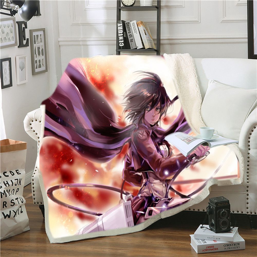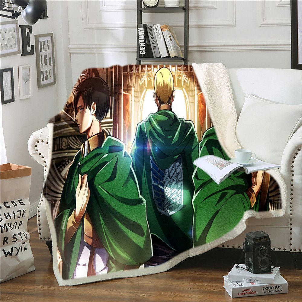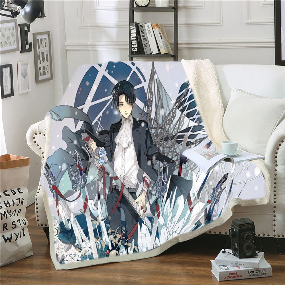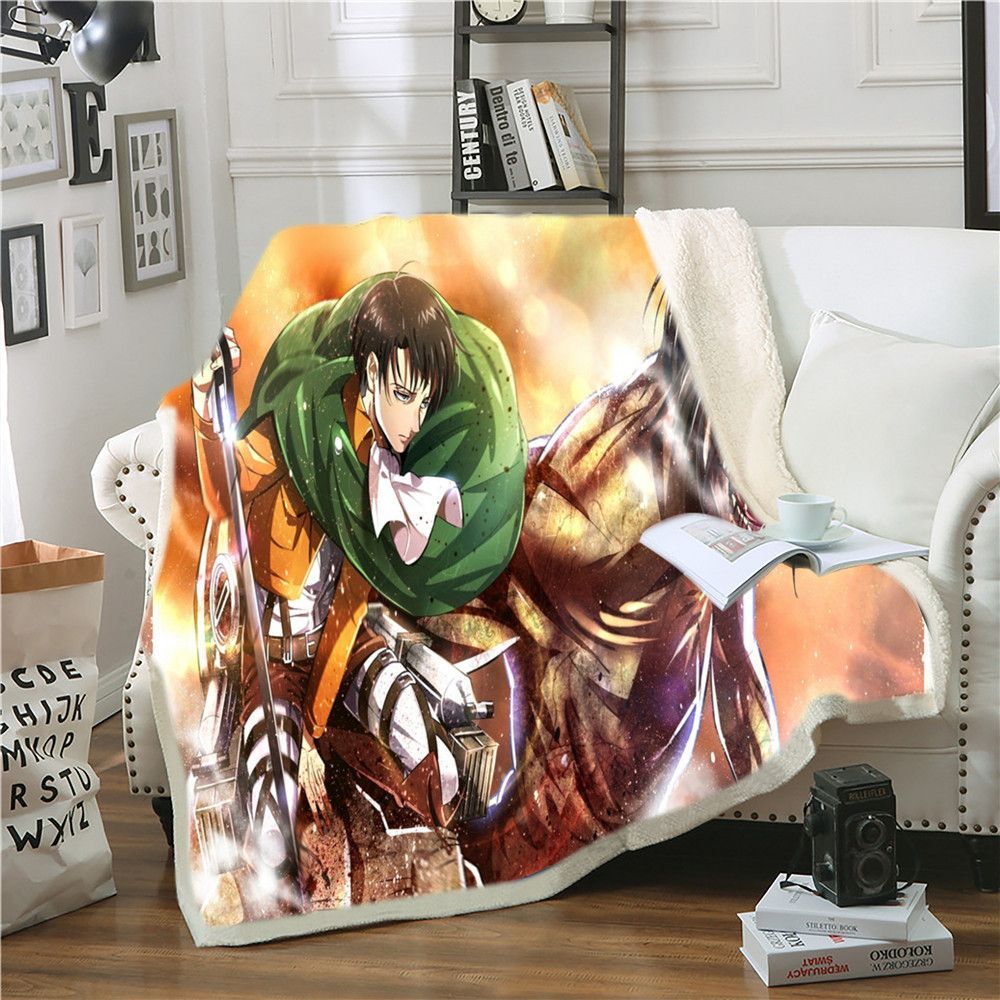Anime Attack On Titan Flanell Blanket Levi Mikasa Eren Doppelseitig Decke Quilt