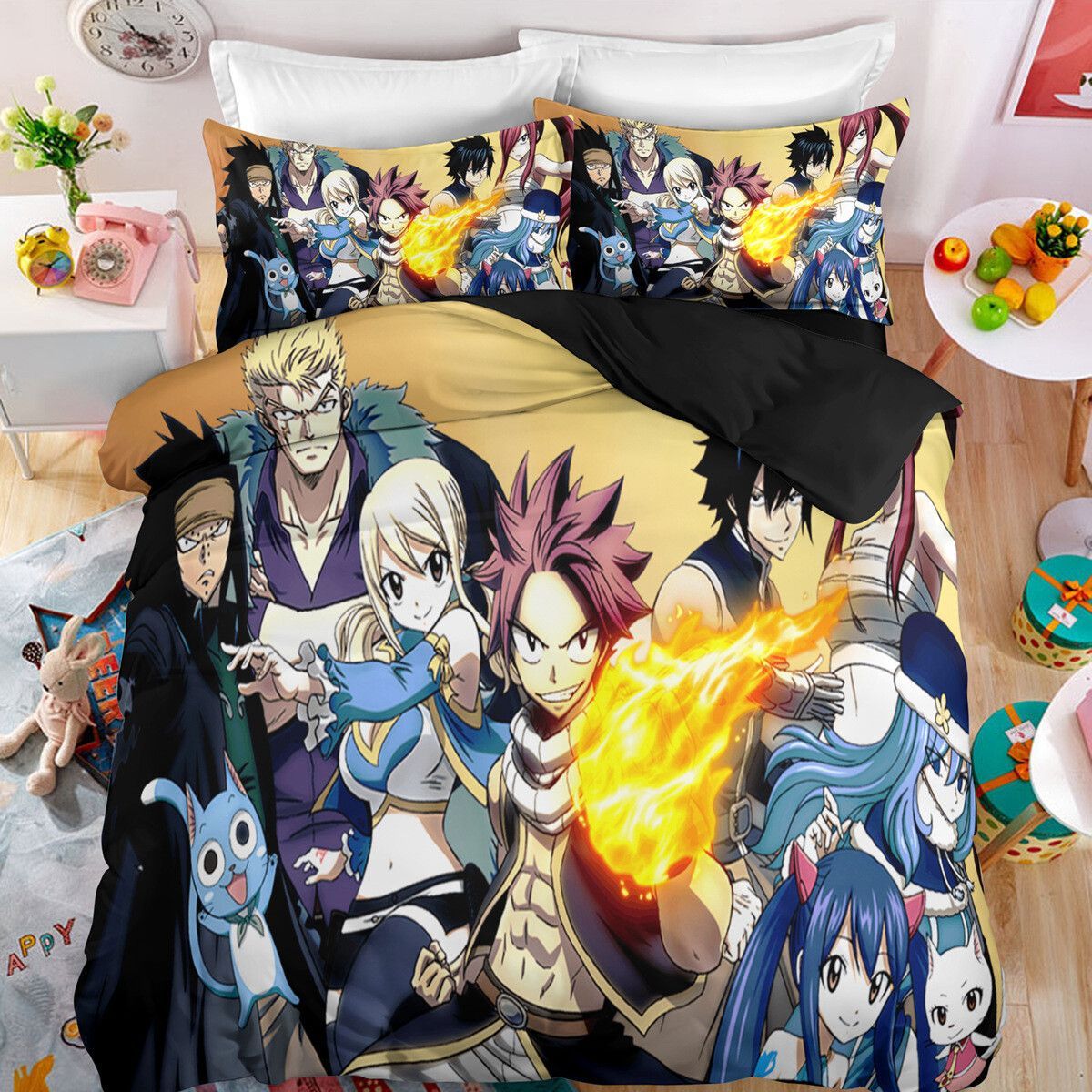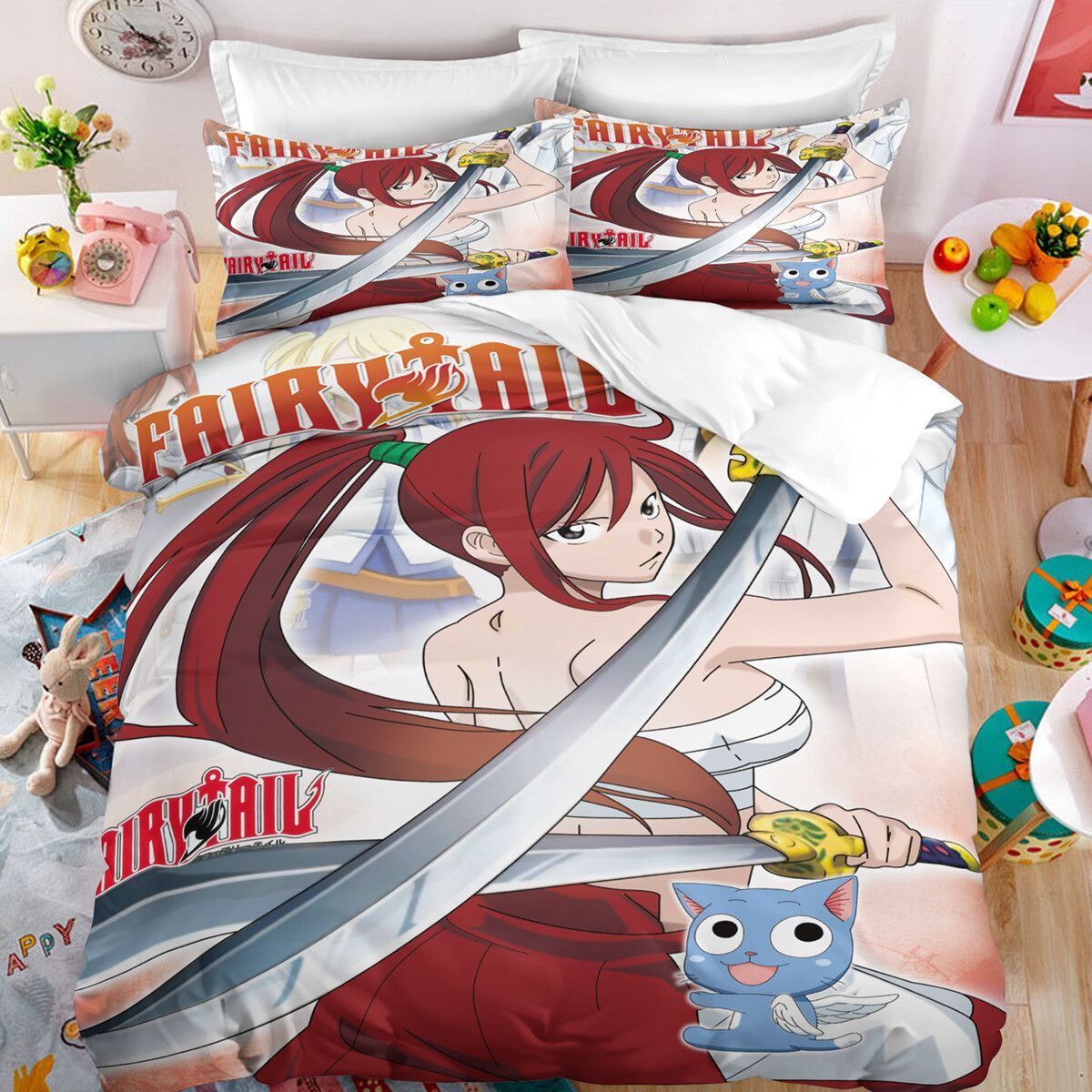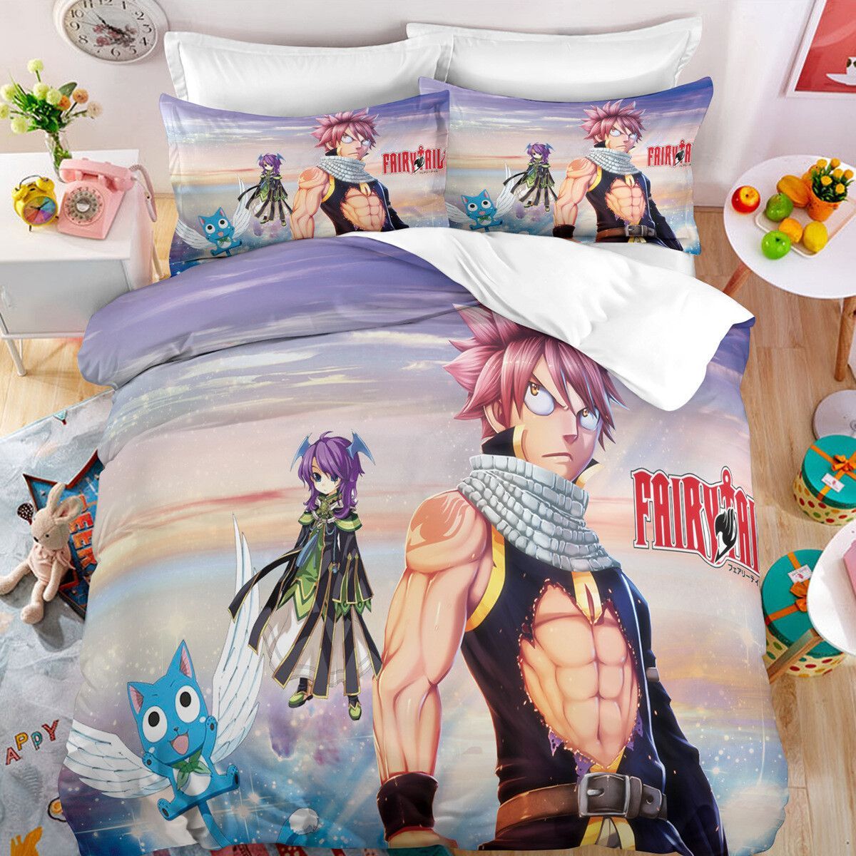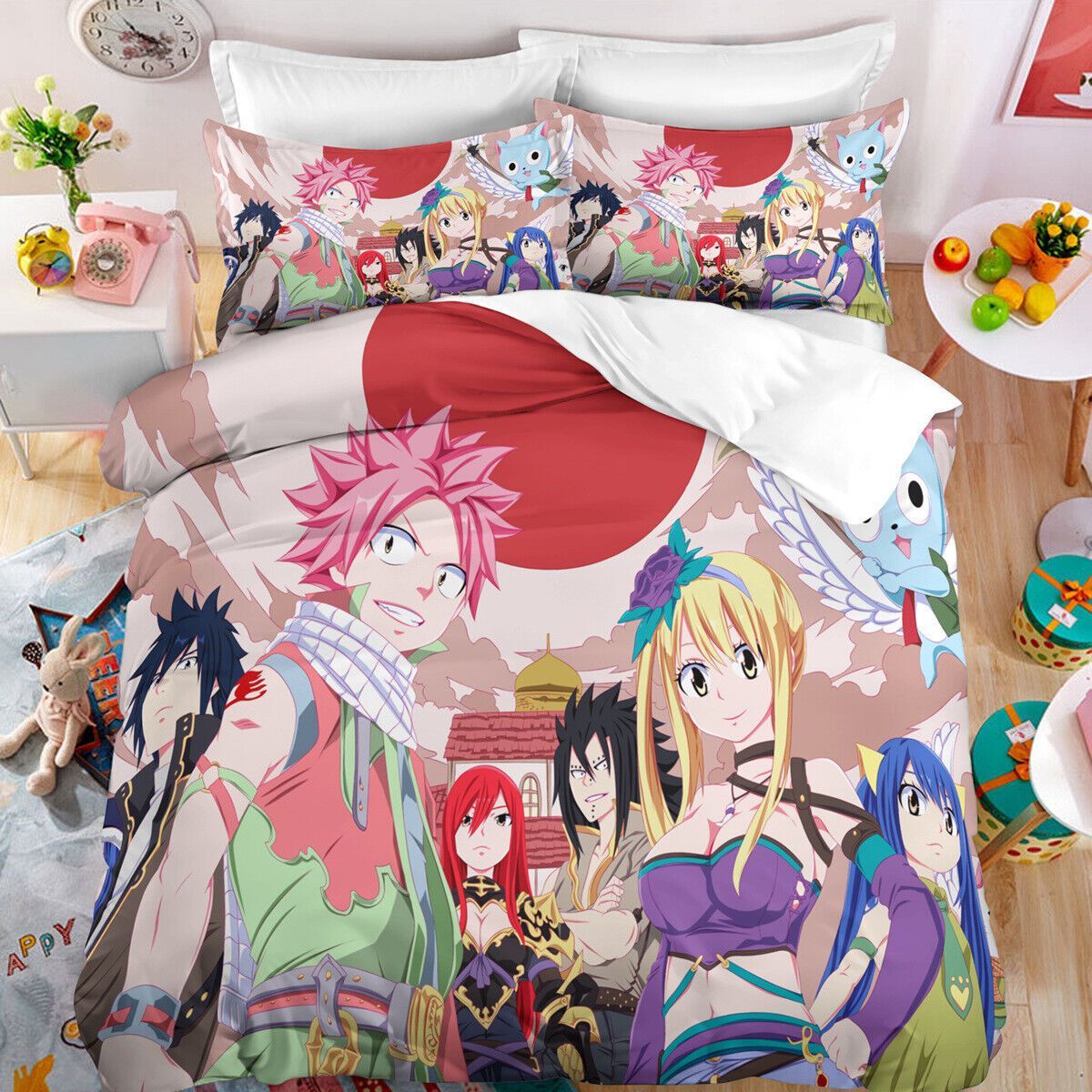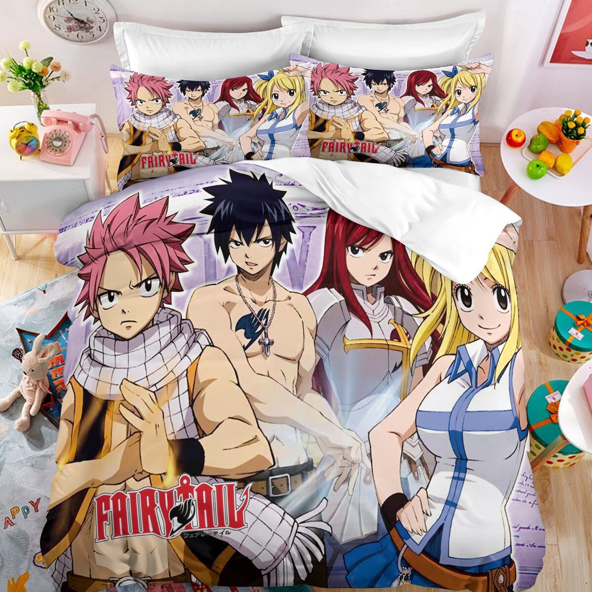 Anime Fairy Tail Bettwasche Set Cosplay Natsu Erza Scarlet Bettbezug Kissenbezug