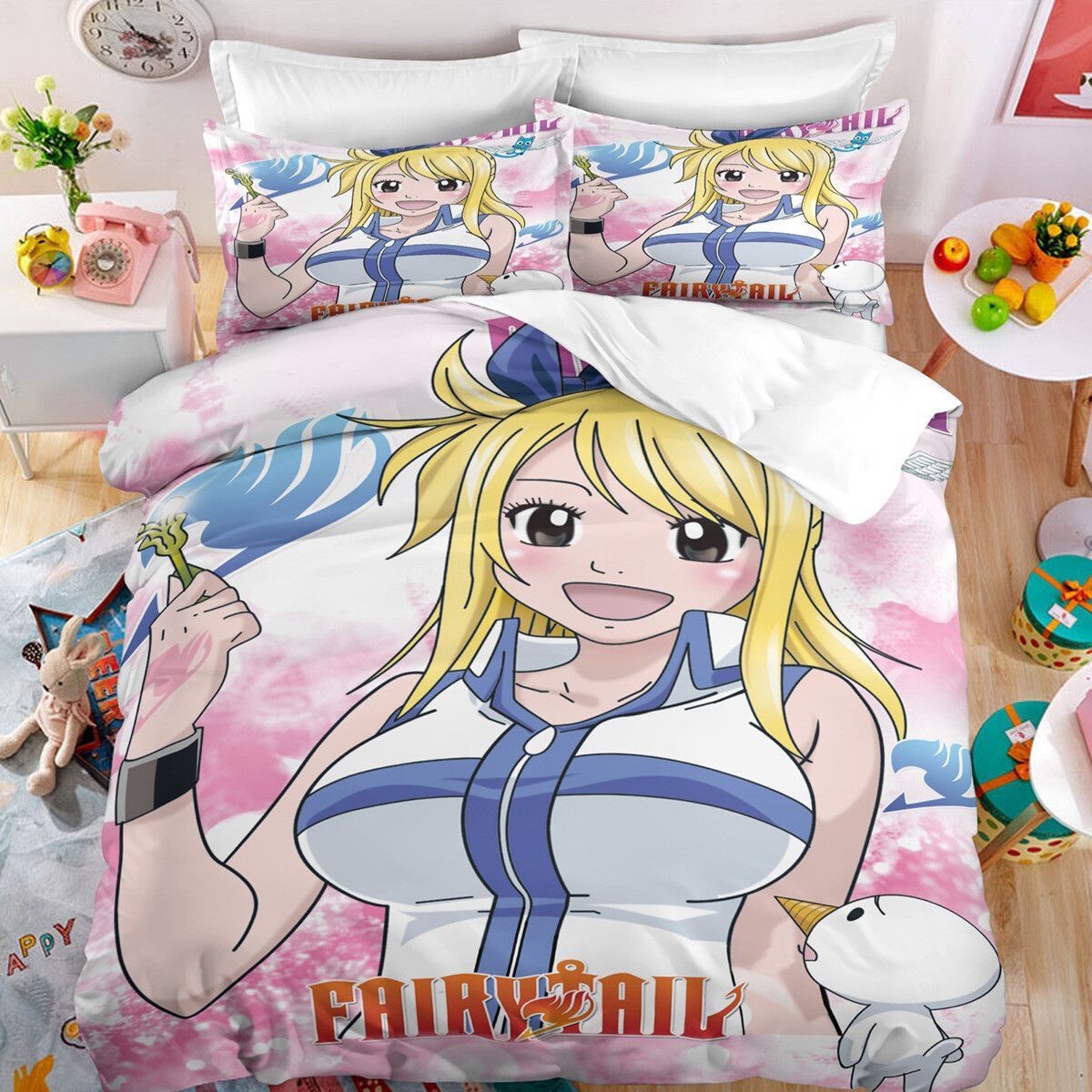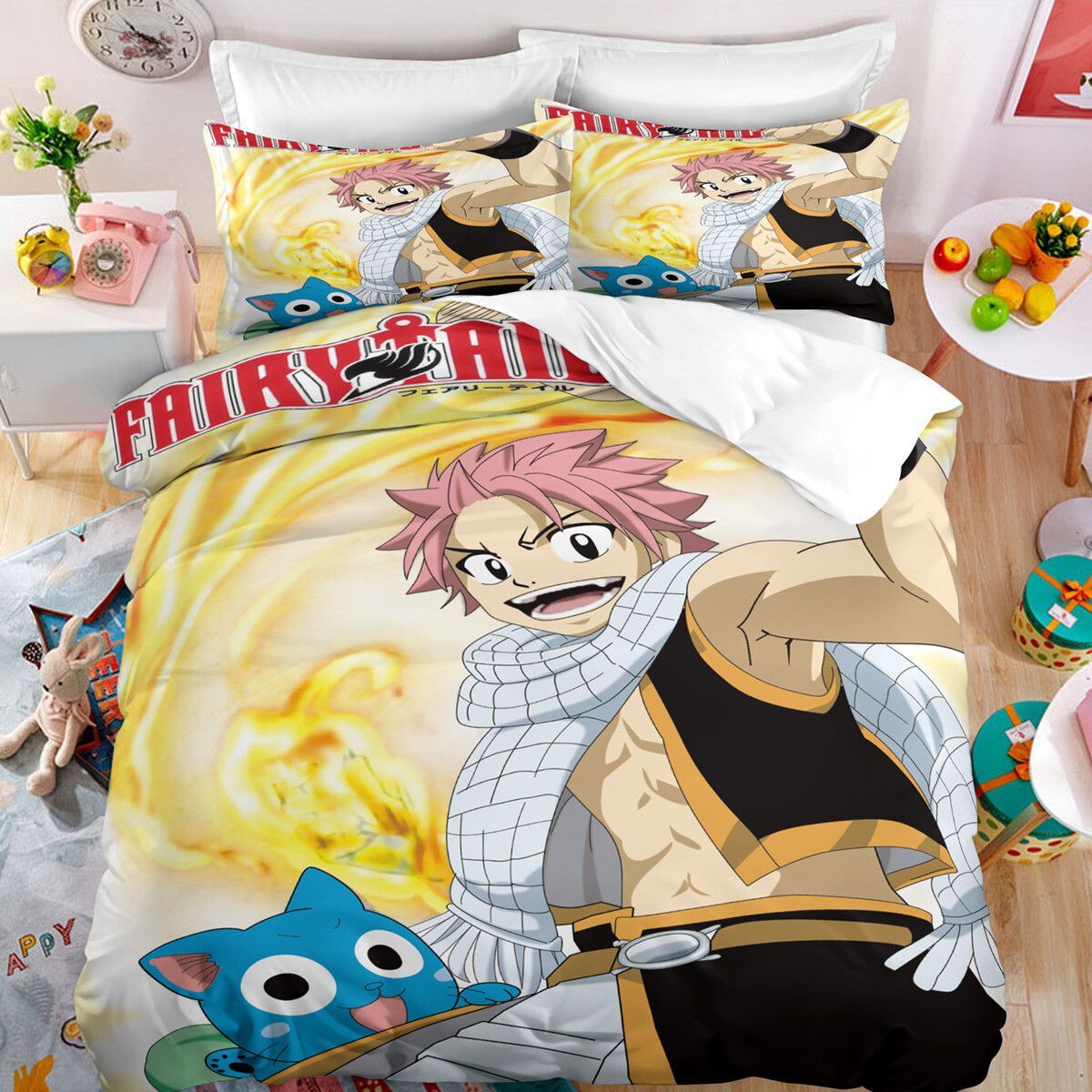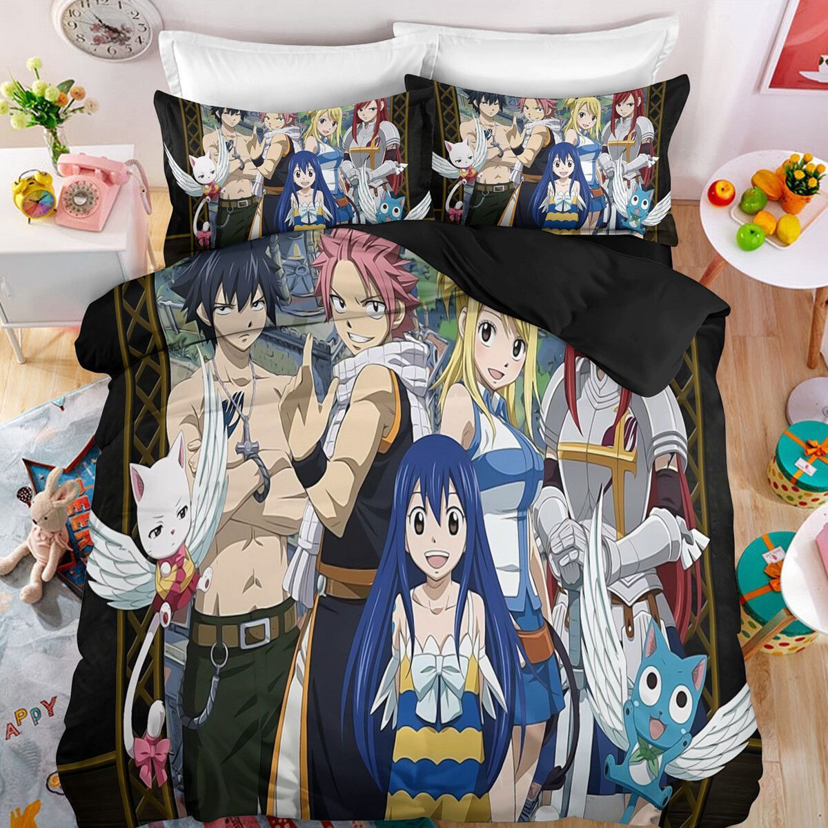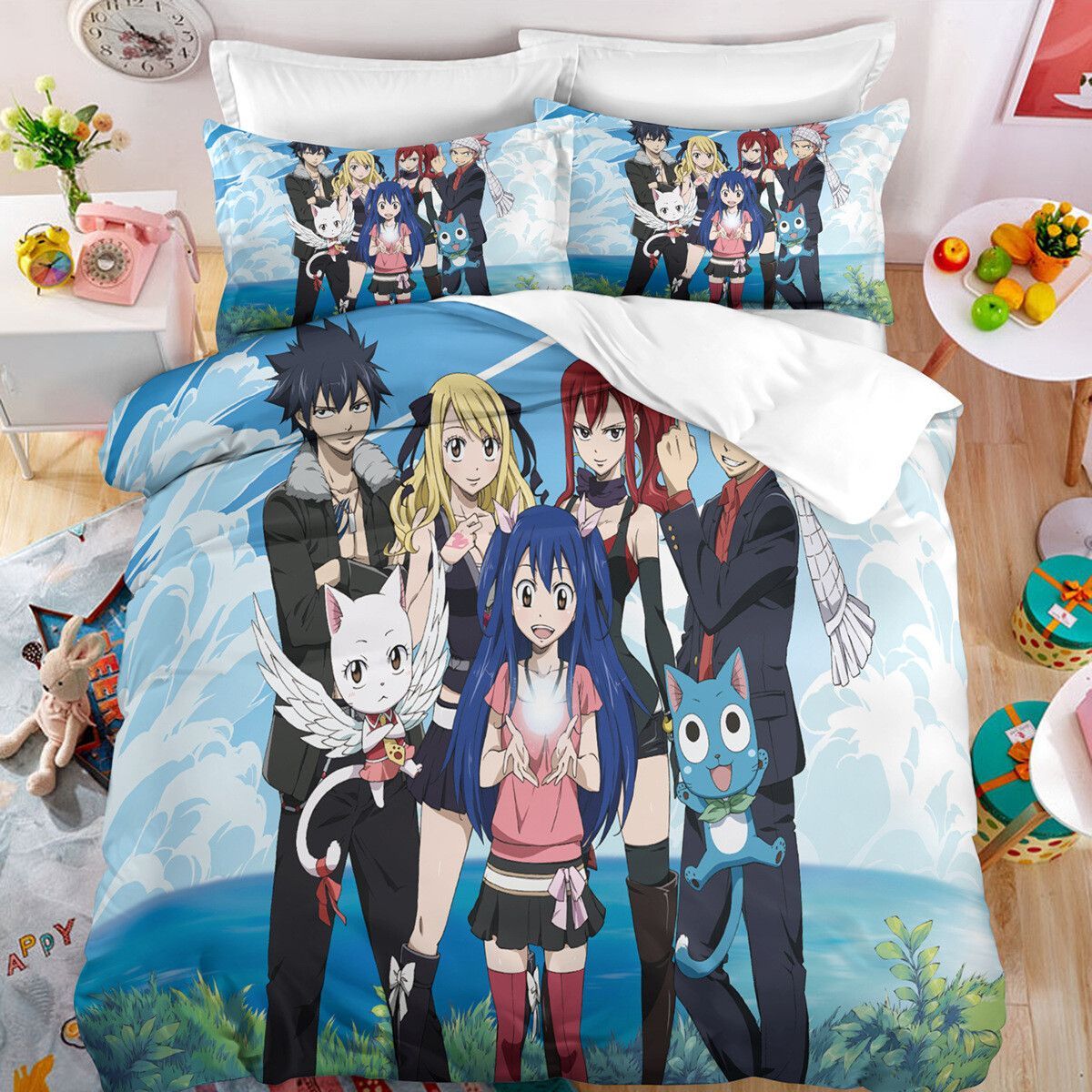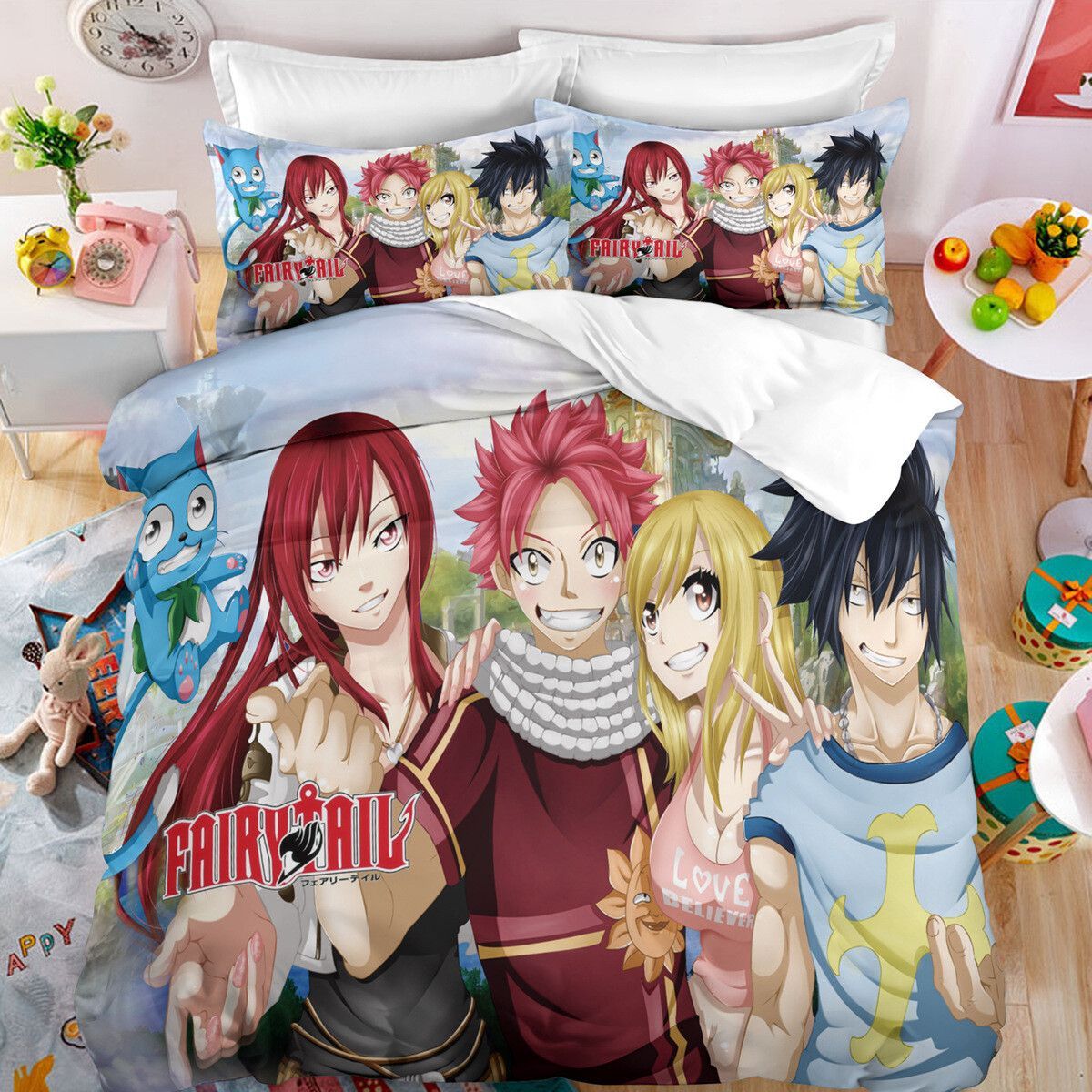 Anime Fairy Tail Bettwasche Set Cosplay Natsu Erza Scarlet Bettbezug Kissenbezug