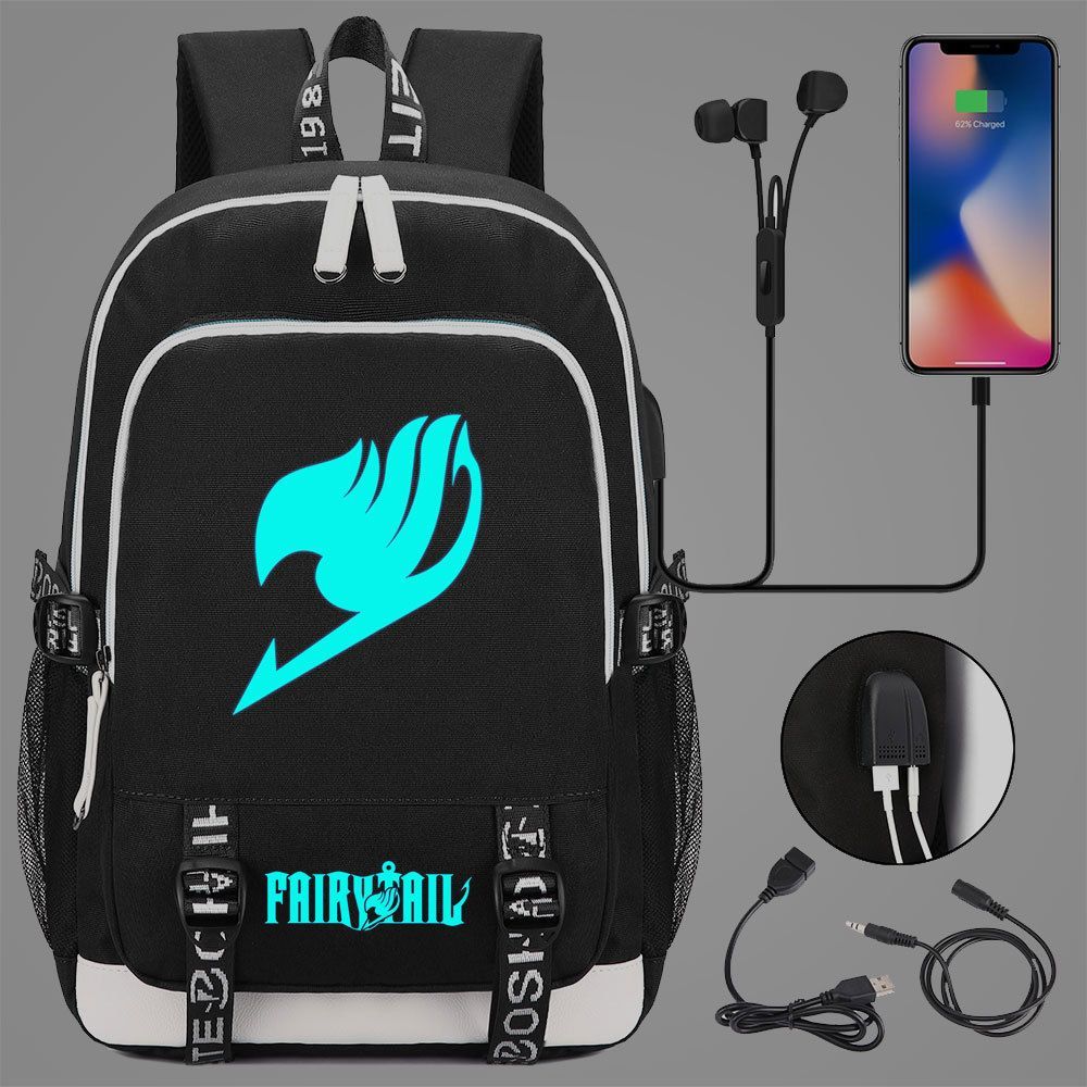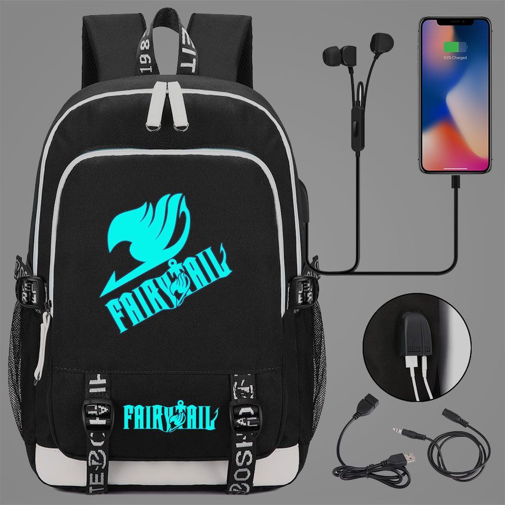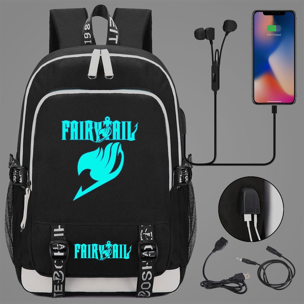 Anime Fairy Tail Schultasche Natsu Lucy Happy Backpack noctilucent USB-Lade Rucksack