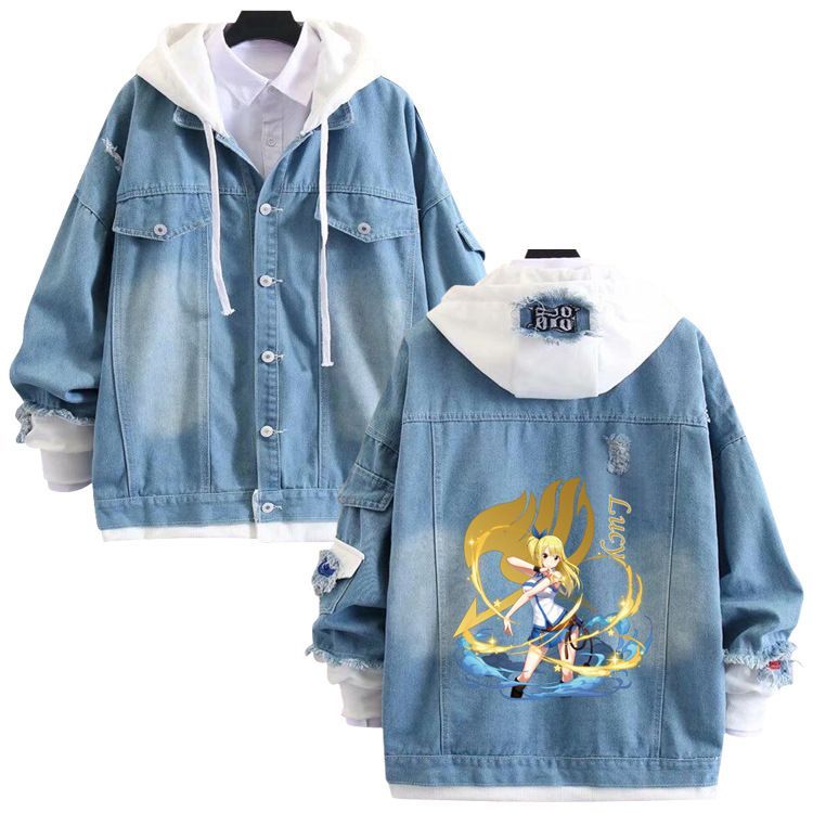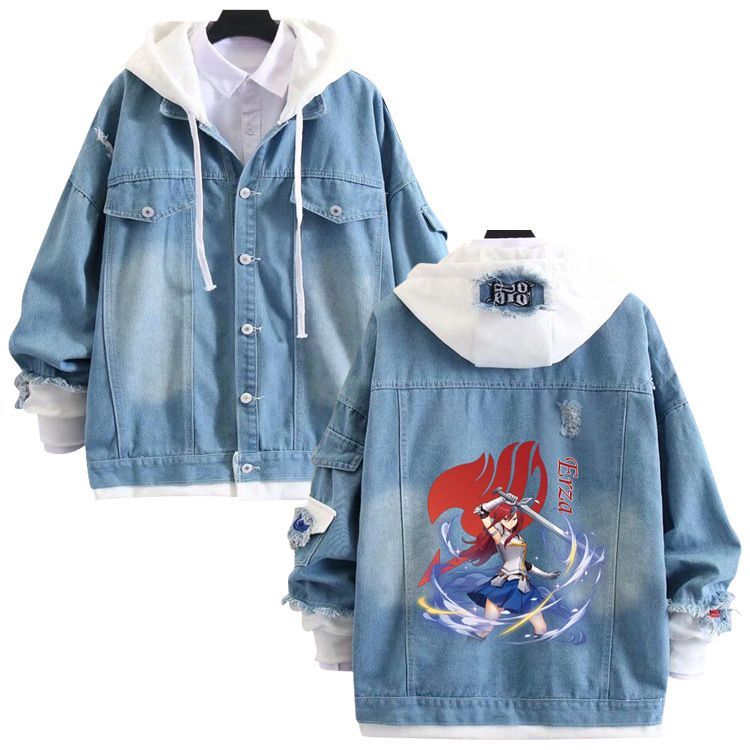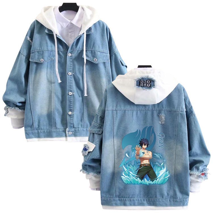 Anime Fairy Tail Sweatshirt Mantel Gray Erza Natsu Kapuze Hoodie Happy Jeansjacke