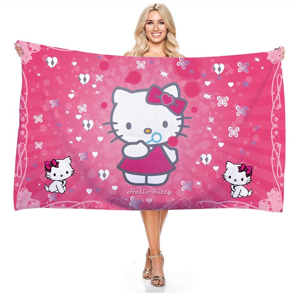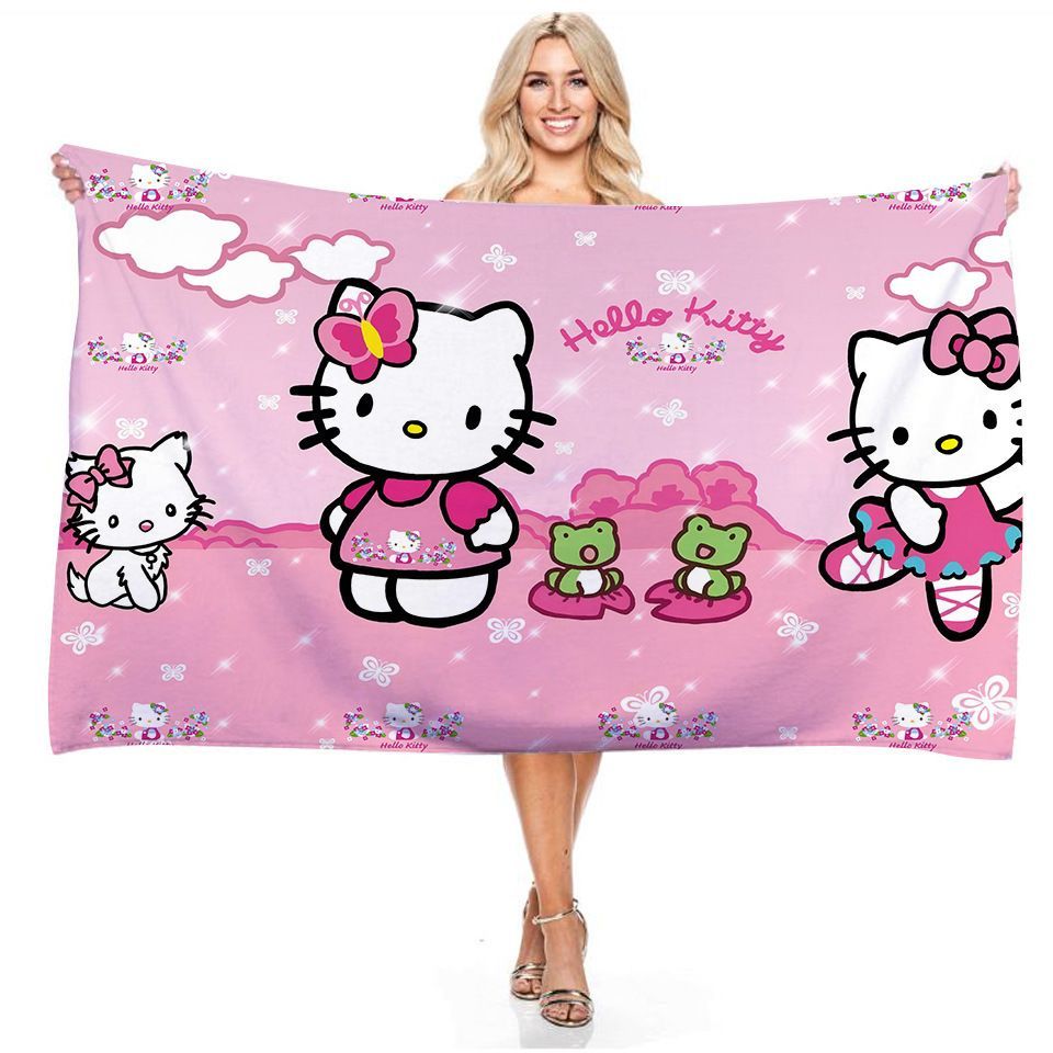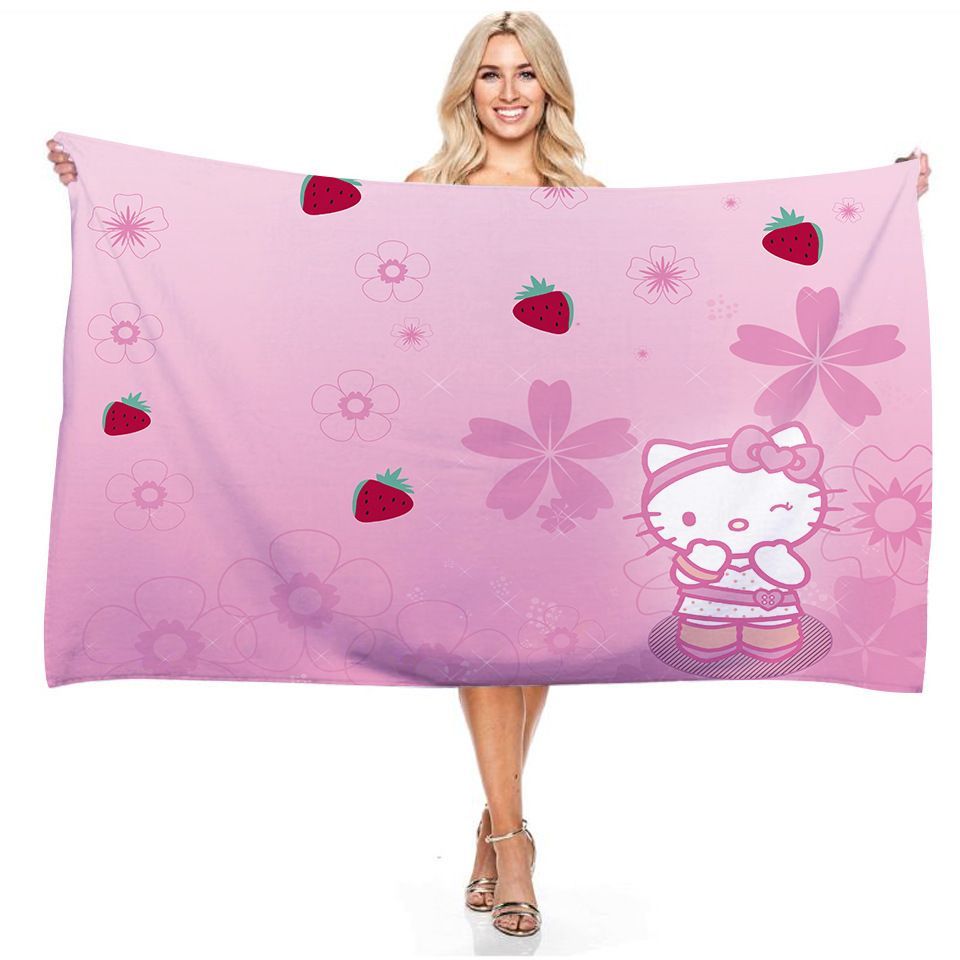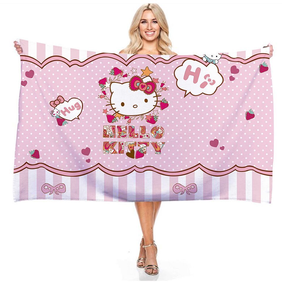Anime Hello Kitty Strandtuch 3D Druck Schnell Trocknend Badetücher Pool Picknickmatte