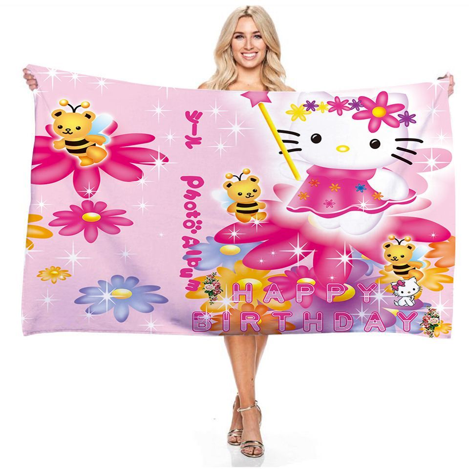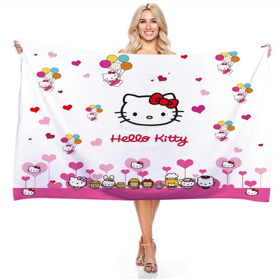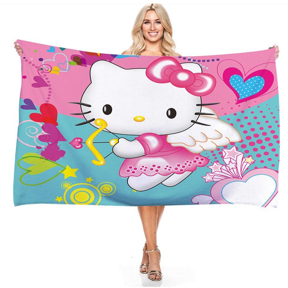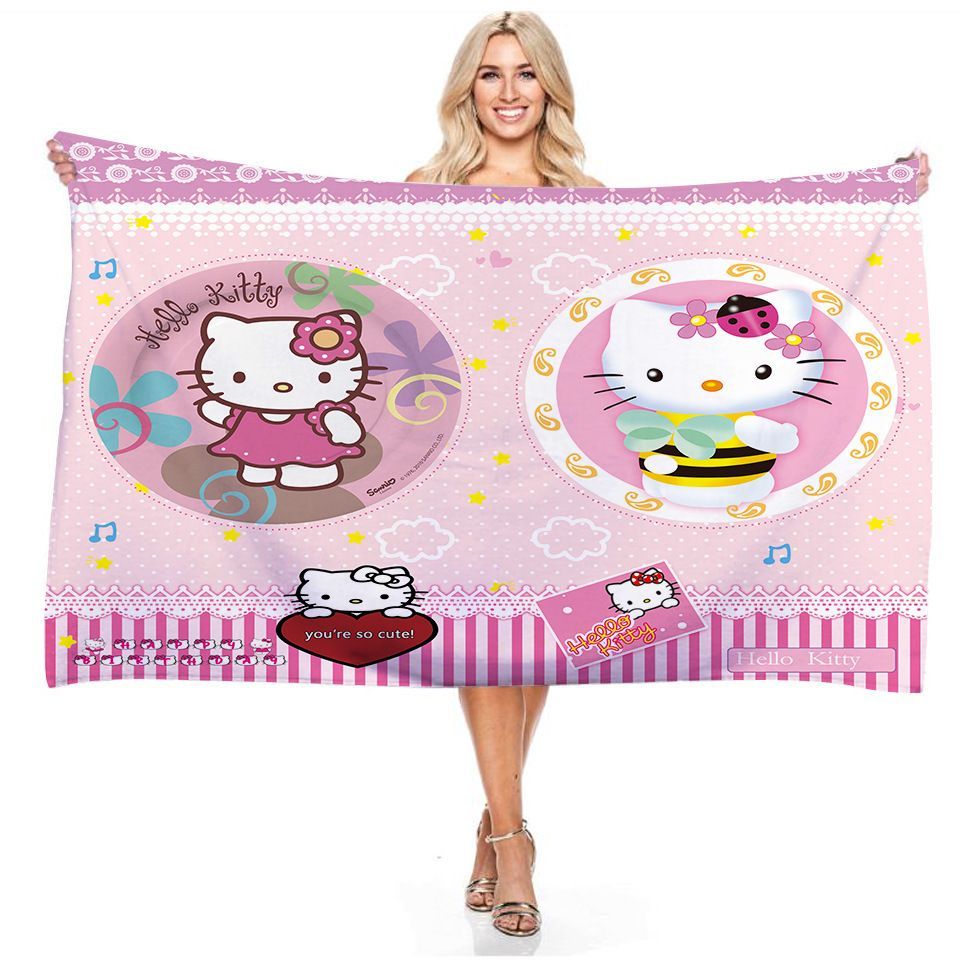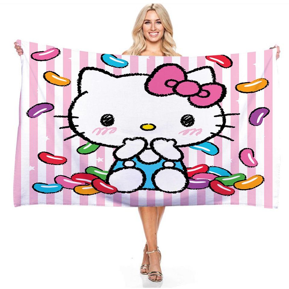 Anime Hello Kitty Strandtuch 3D Druck Schnell Trocknend Badetücher Pool Picknickmatte