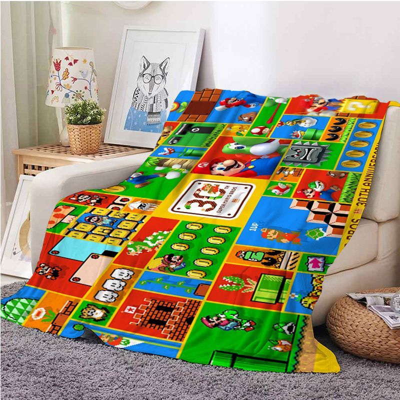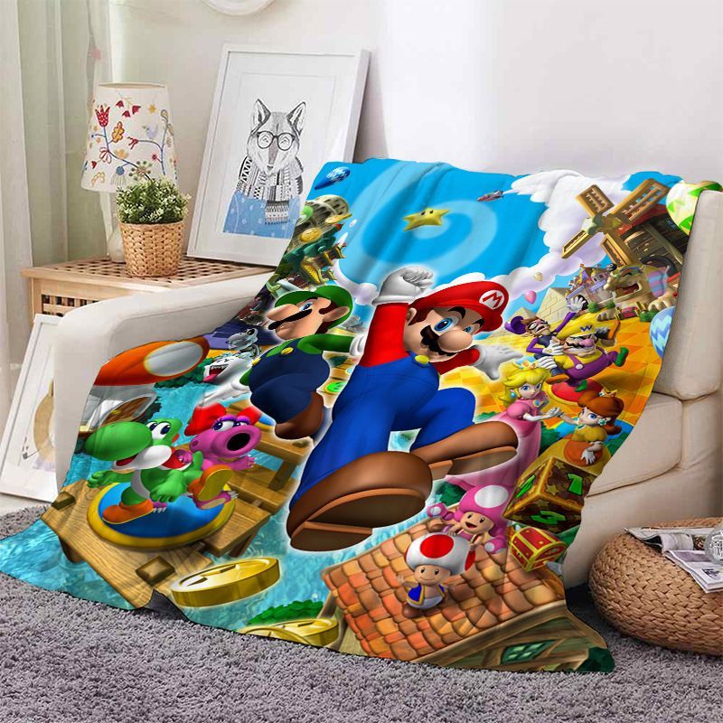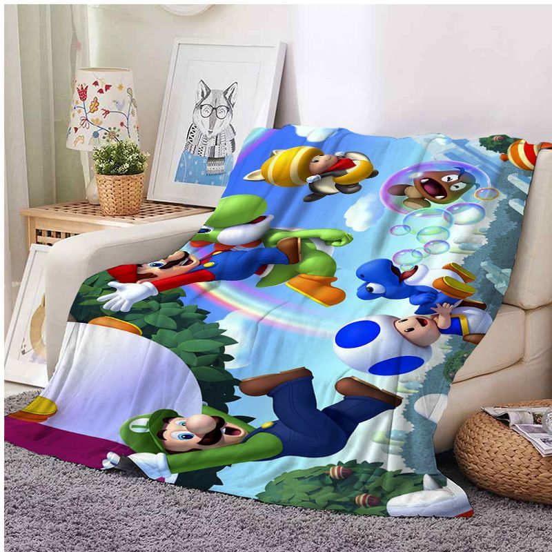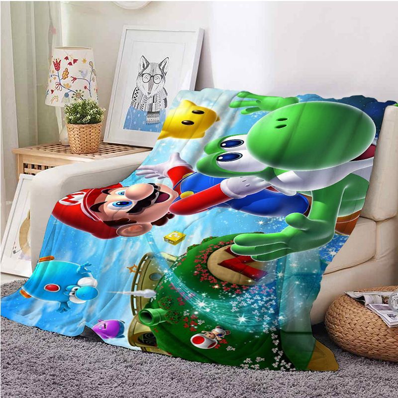Anime Mario Flannel Fleece Blanket Yoshi Luigi Sommer Decke Sofa Quilt 130x150cm